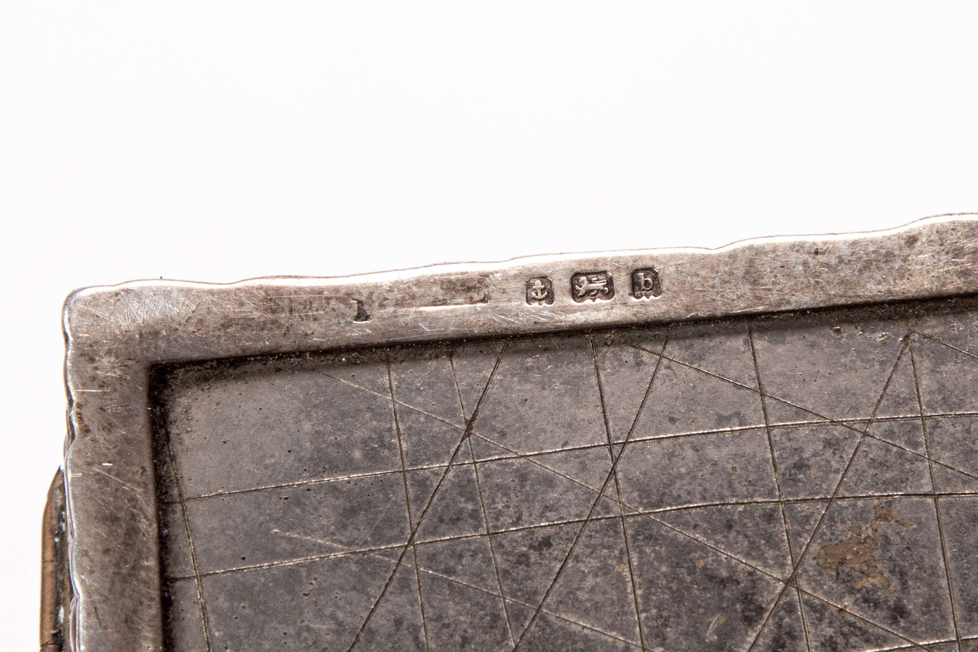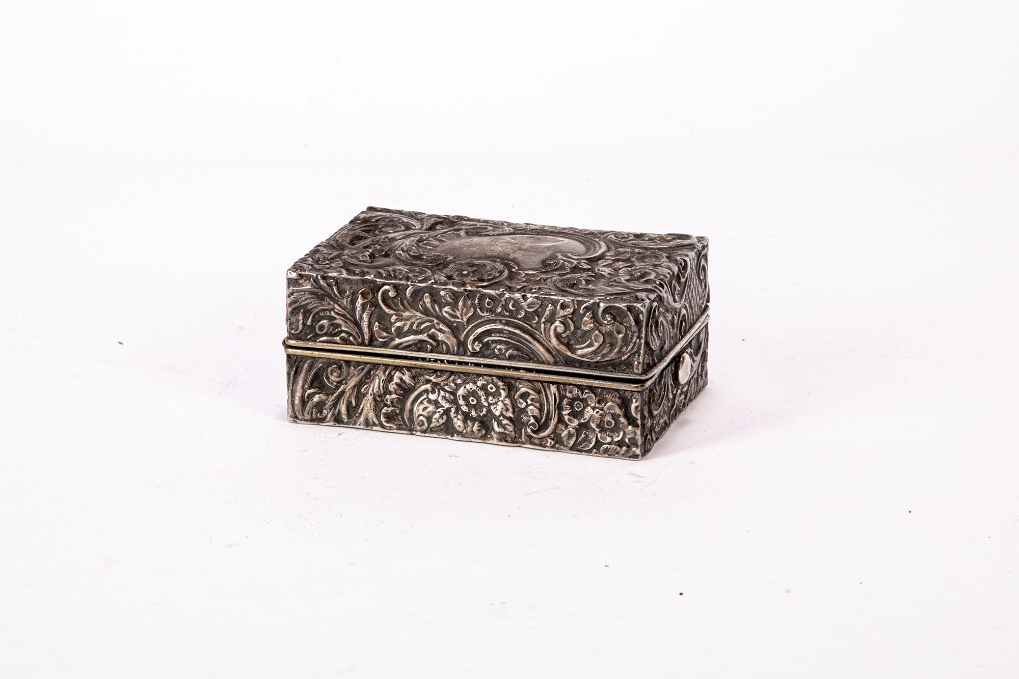 di forma rettangolare, sbalzata in volute e fiori, interno con accessori e fiaschetta. (Difetti).