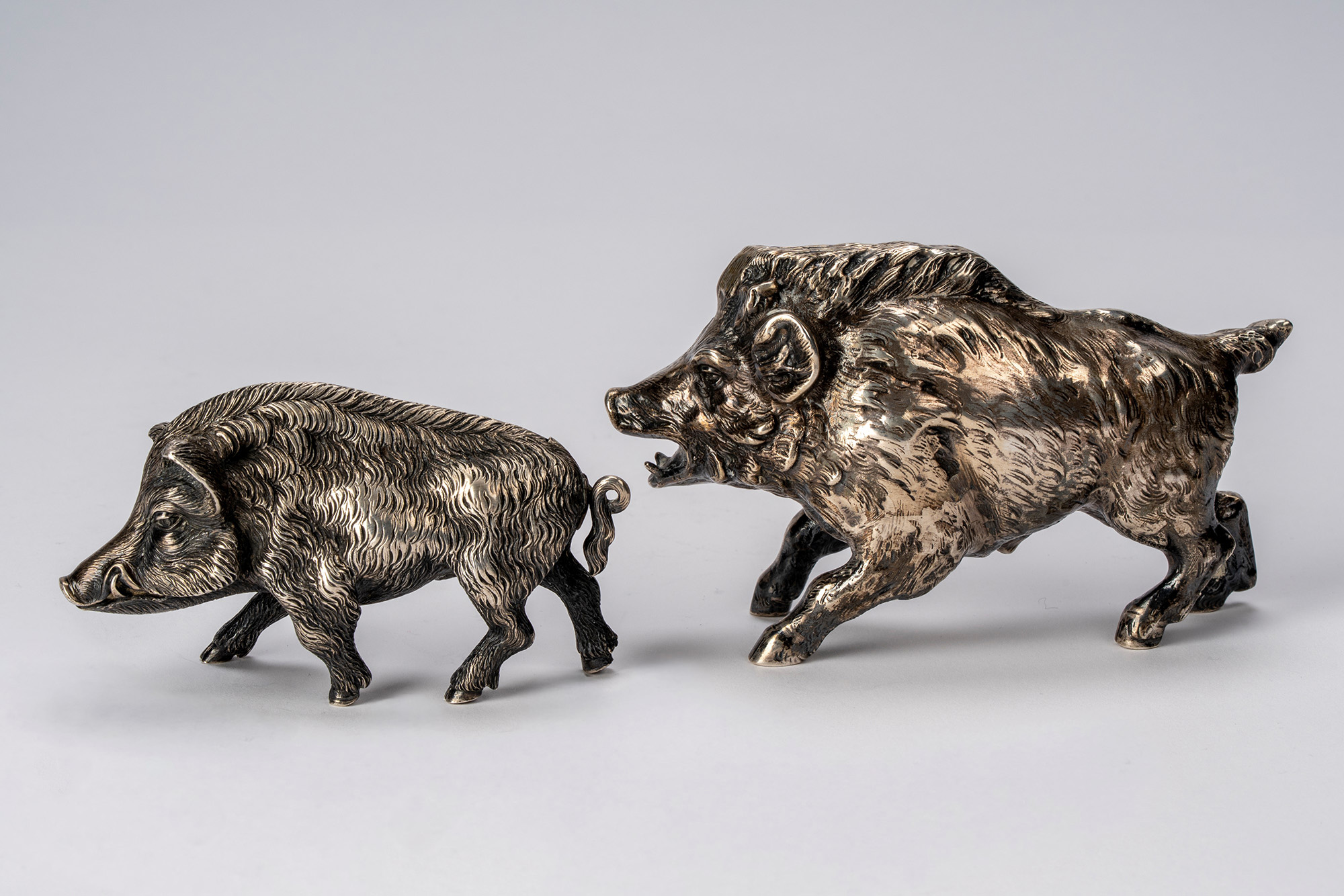 cesellate a tutto tondo a foggia di cinghiale.