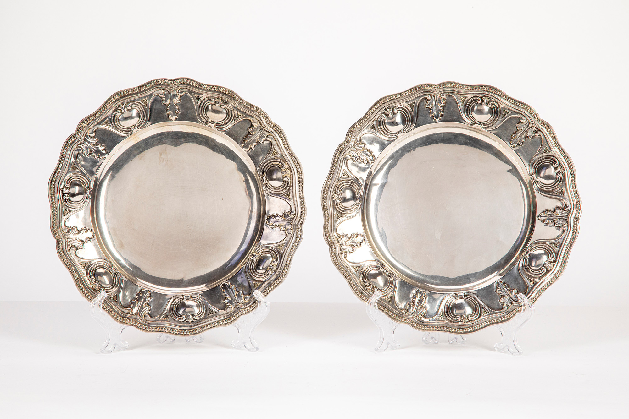 di forma circolare, bordo sagomato sbalzato a motivi fogliacei e stilizzati.