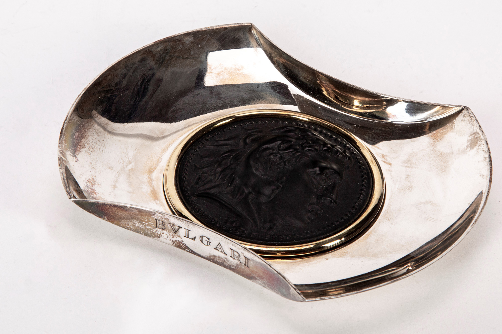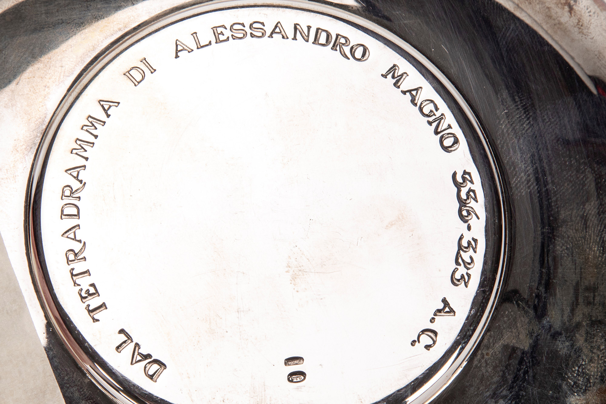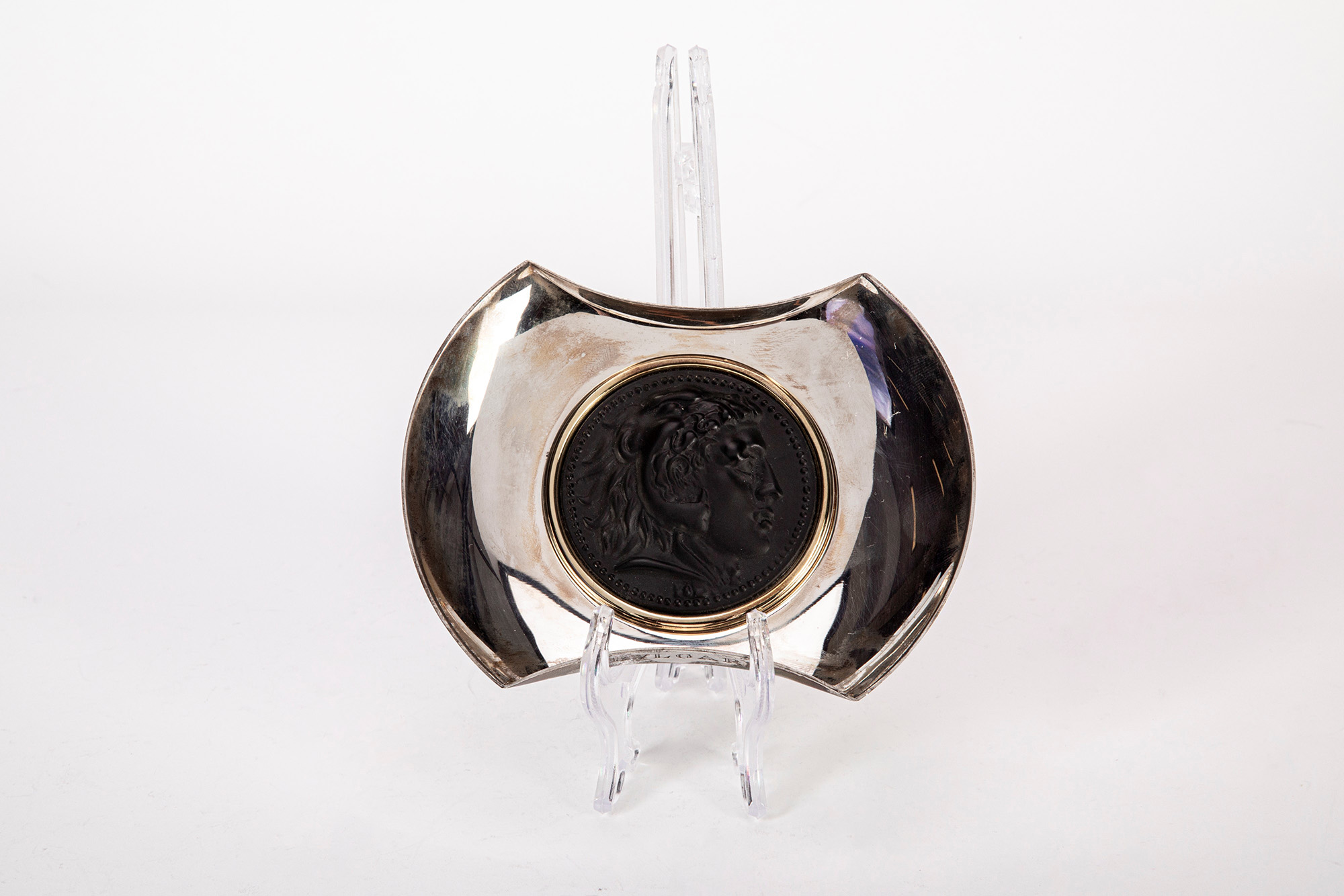 di forma sagomata con profilo di Alessandro Magno incastonato al centro.