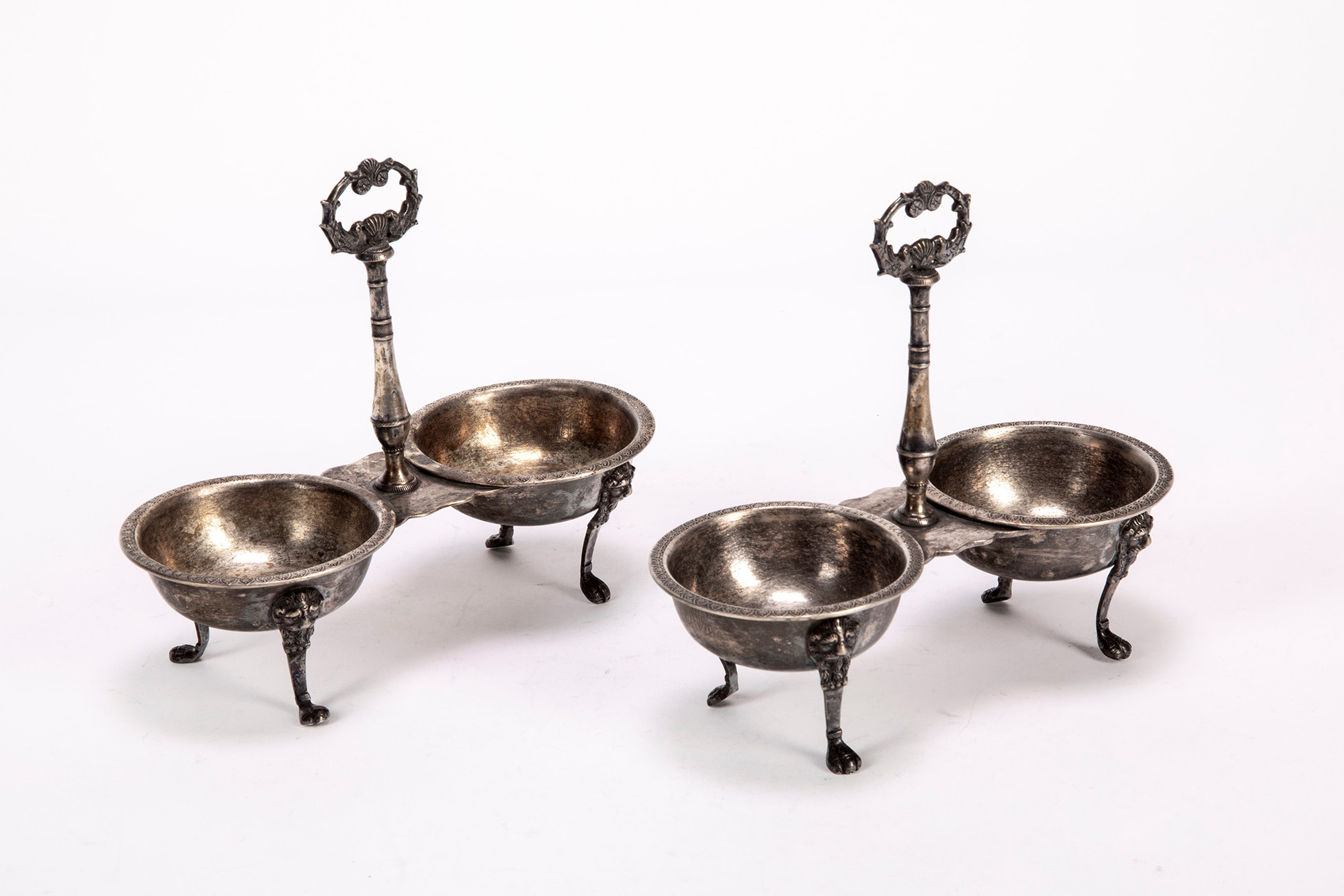 argento corpo con 2 vaschette semisferiche laterali con bordatura cesellata a palmette.