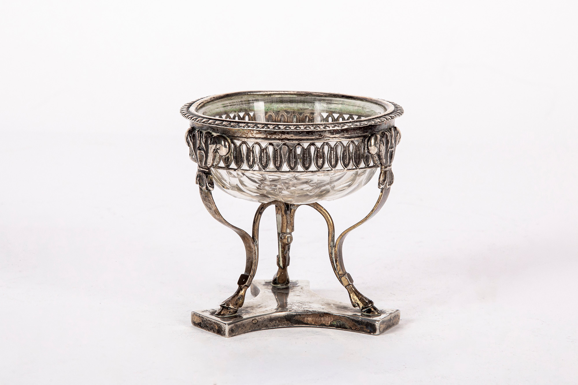 con fascia traforata e cesellata a palmette, parte interna in cristallo molato.