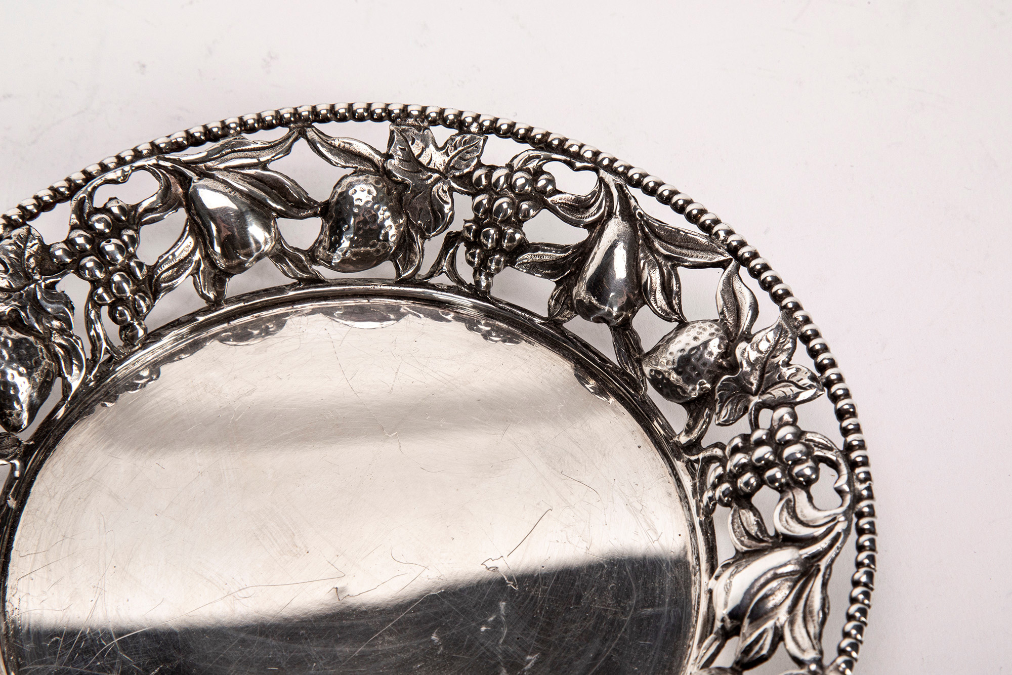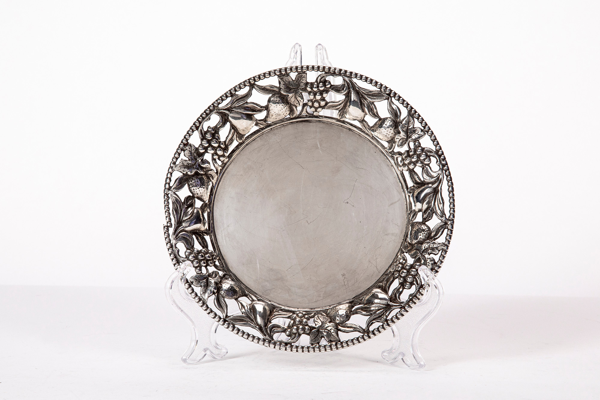 di forma circolare, con bordo traforato e cesellato a frutti.