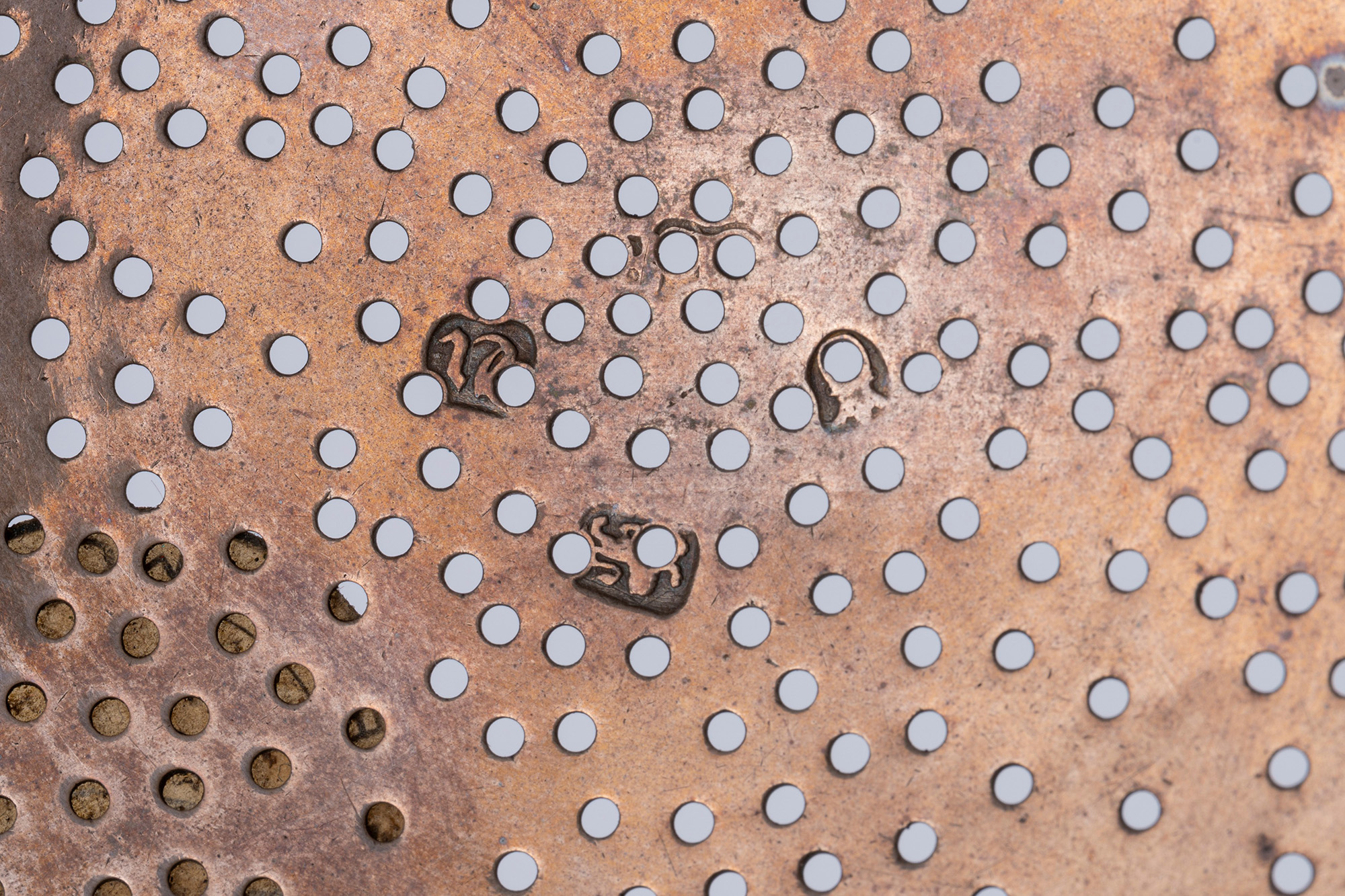 di forma tonda con cavetto traforato e presa mossa, Prov. Collezione Bulgari, etichetta sul fondo.