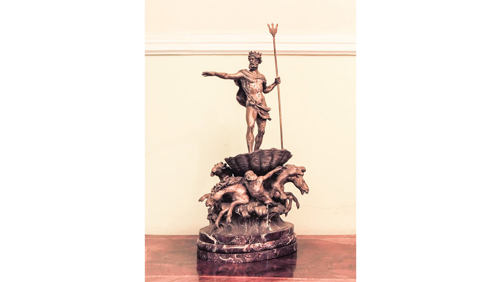 NETTUNO SU COCCHIO gruppo in argento su base in marmo rosso Provenienza:...