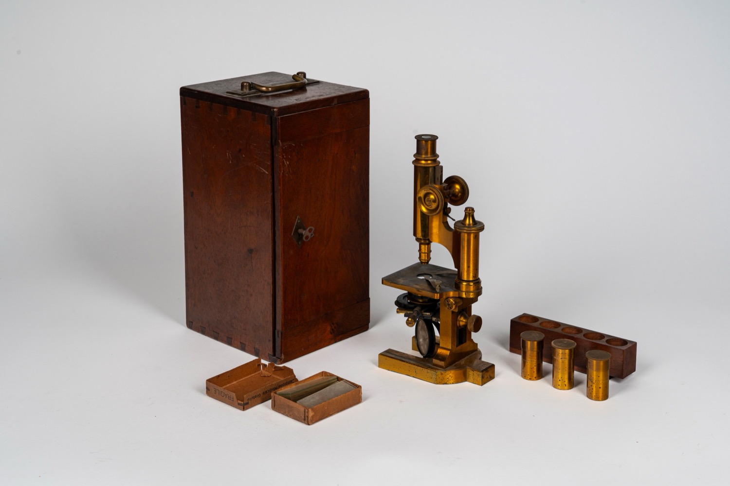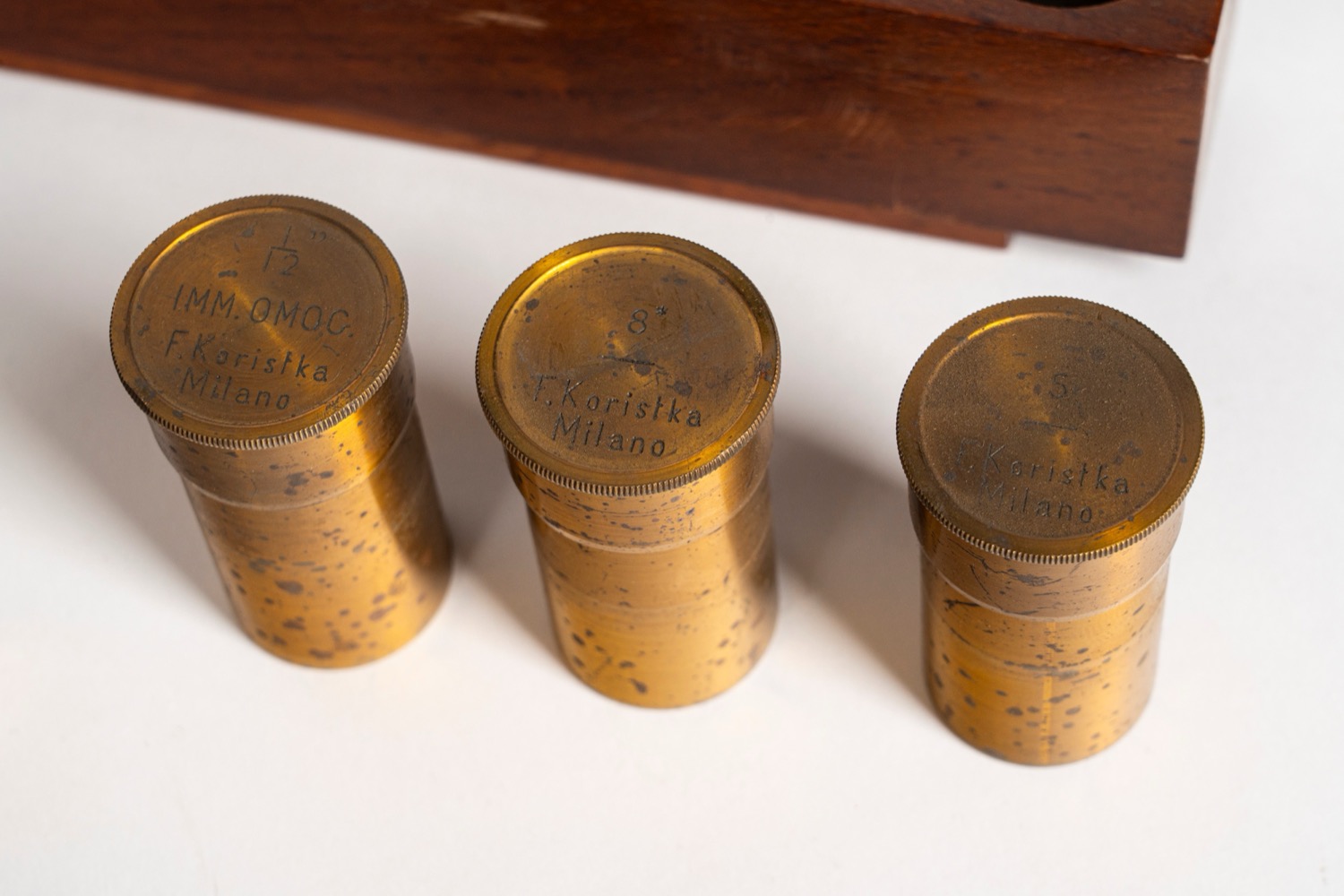 Microscopio in cassetta. F. Koristka, Milano. XX secolo