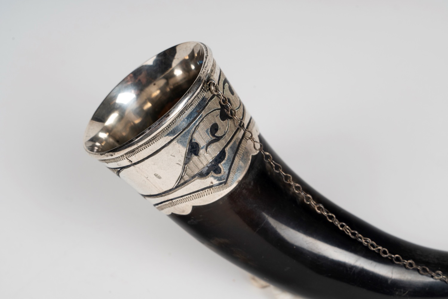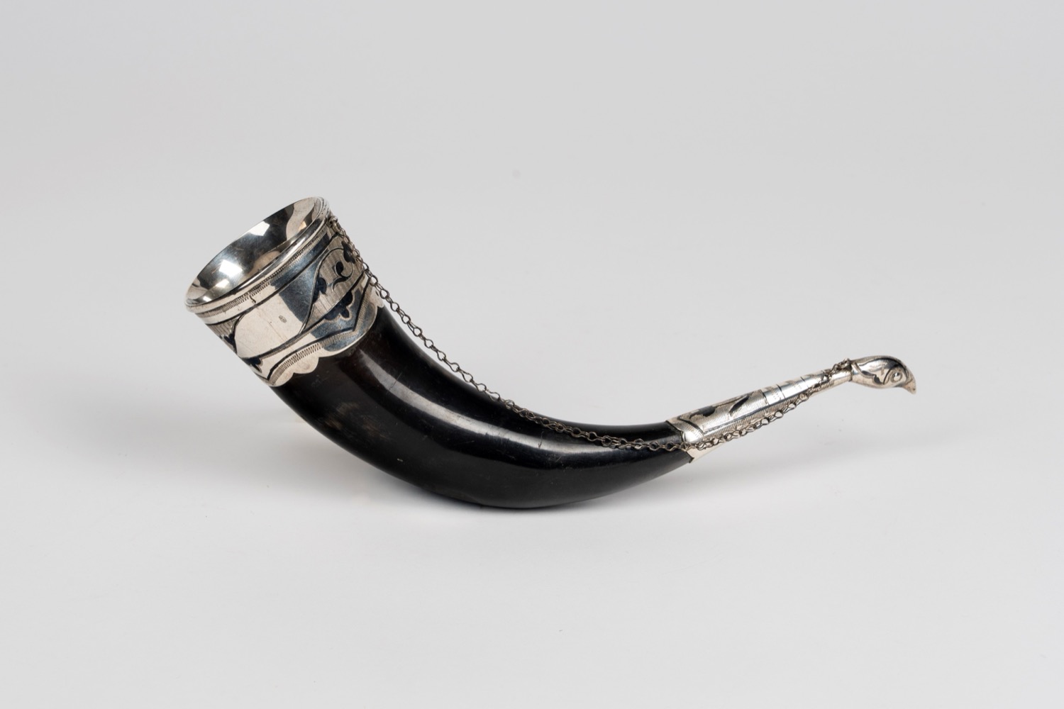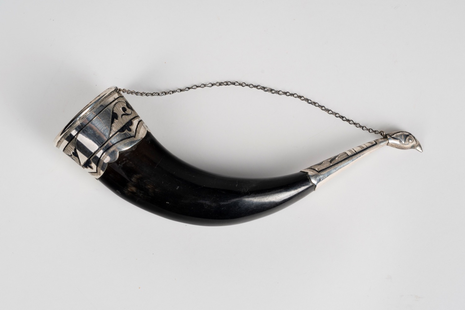 Lot 18 | Corno da parata con ghiere in argento inciso a motivi floreali, Russia URSS