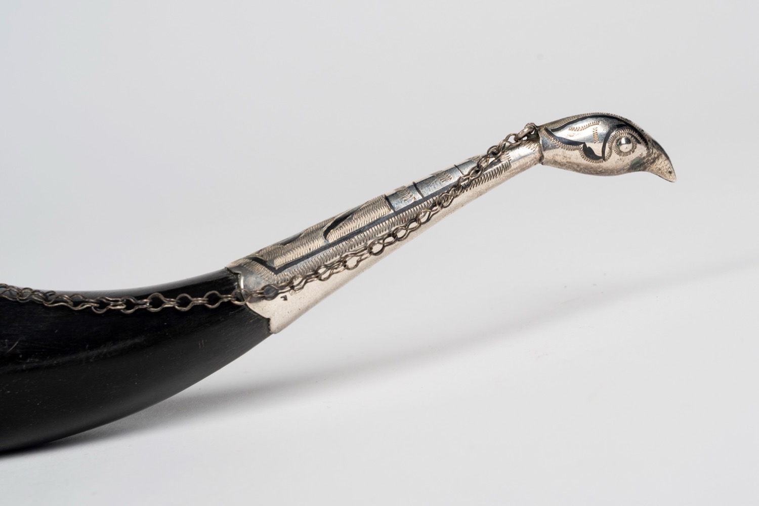 Corno da parata con ghiere in argento inciso a motivi floreali, Russia URSS