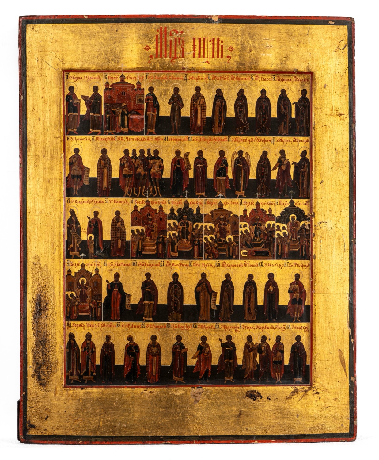 Icona su tavola del Menaion (Calendario dei santi). Russia,