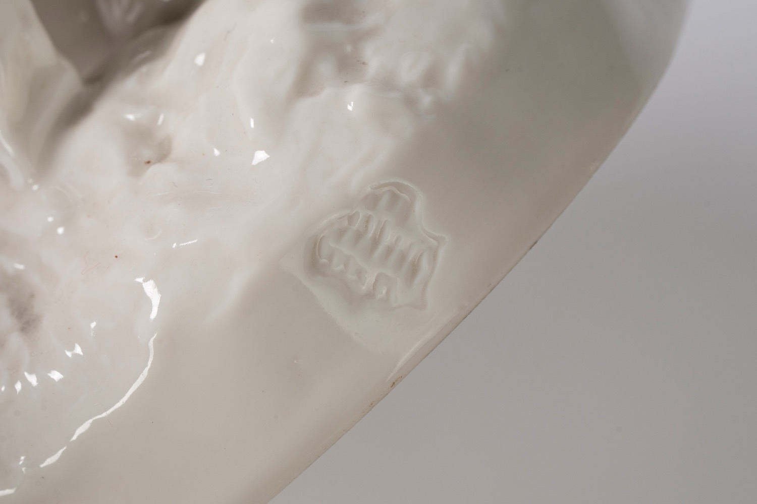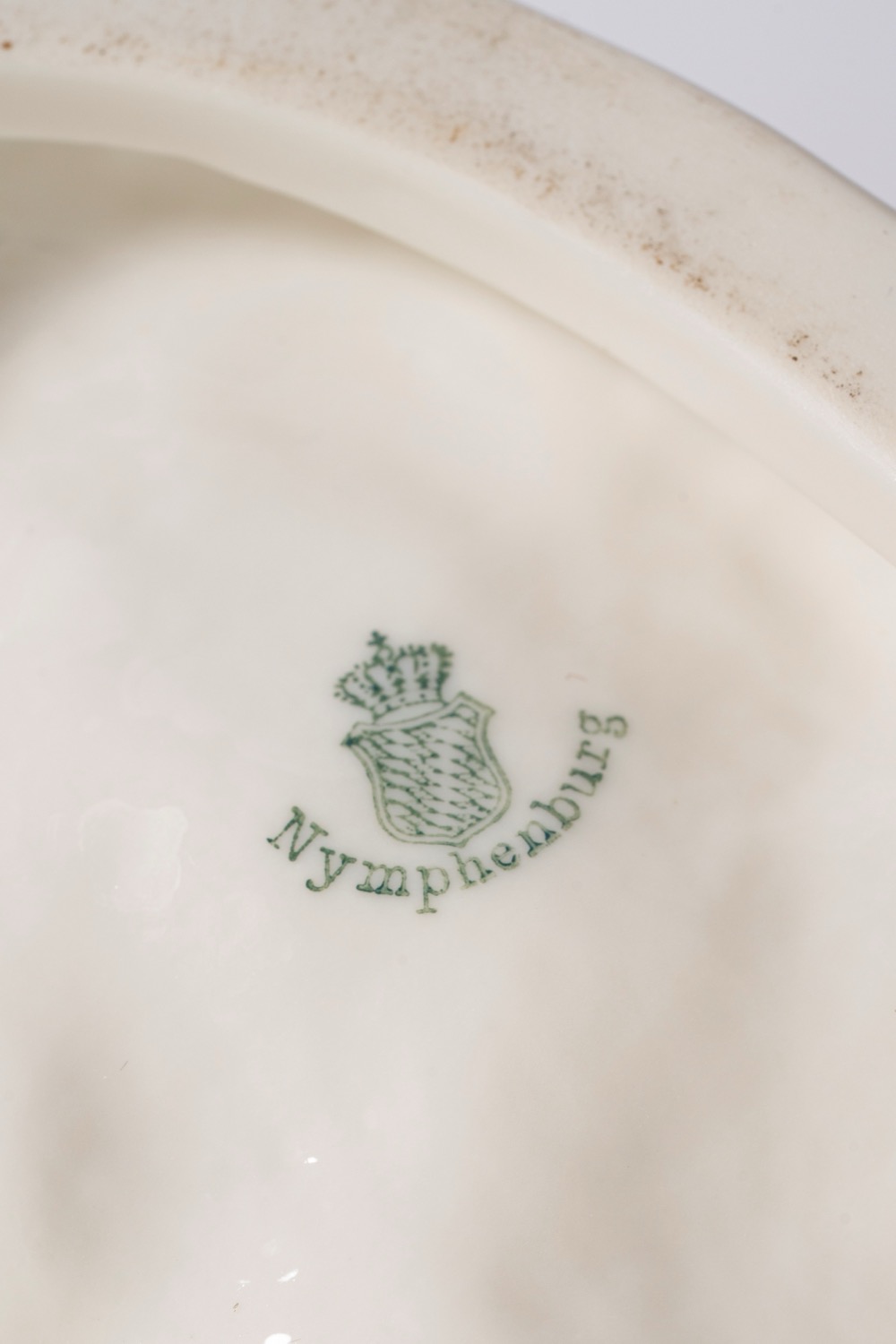 Marca "scudo" impressa nel profilo al retro della base e dipinta in verde sotto la base, numeri impressi 523 e 5Da un modello di Sebastian Habenschaden del 1850.