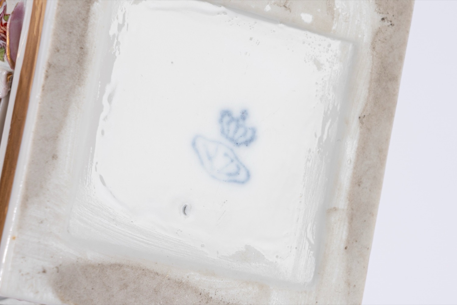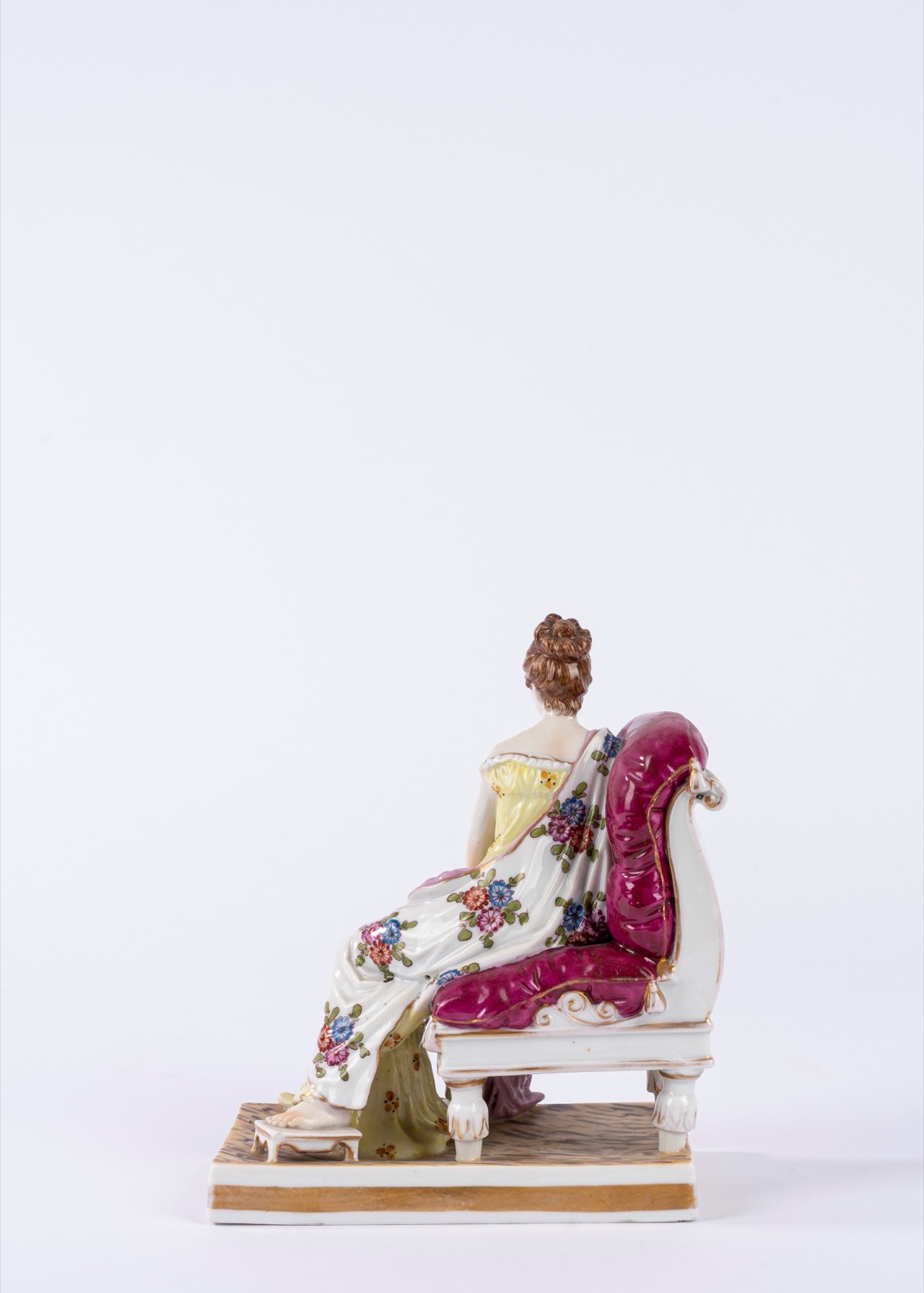 Lot 45 | Gruppo in porcellana policroma raffigurante Madame Juliette Récamier adagiata su una chaise longue, su una base rettangolare decorata a finto marmo. Manifattura tedesca, fine secolo XIX/XX.