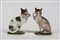 Coppia di figure in porcellana policroma raffiguranti due gatti seduti. Meissen, circa 1740, da un modello di J. J. Kaendler del 1736
