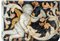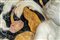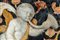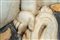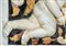 Putto alato aggettante nell'atto di suonare una tromba tra volute fogliate a rilievo e rami di fiori e foglie policromi. Difetti.Putto alato aggettante nell'atto di suonare una tromba tra volute fogliate a rilievo e rami di fiori e foglie policromi. Difetti.