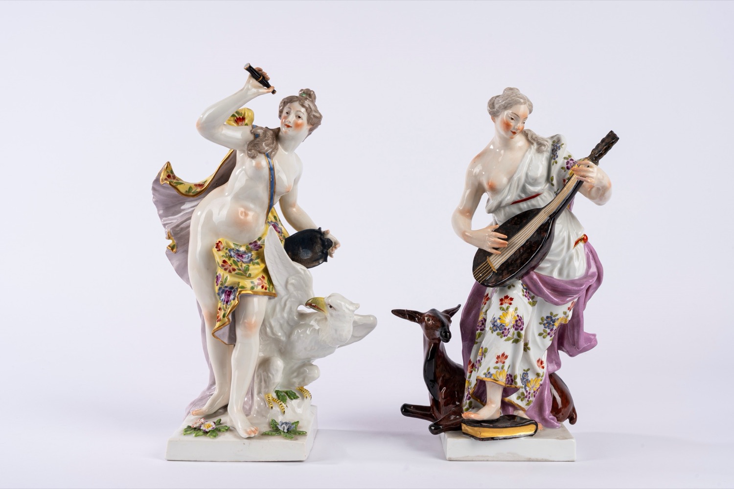 Lot 71 | Due gruppi in porcellana policroma raffiguranti allegoria dell’udito e della vista. Manifattura di Samson, secolo XIX.