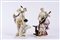 Due gruppi in porcellana policroma raffiguranti allegoria dell’udito e della vista. Manifattura di Samson, secolo XIX.