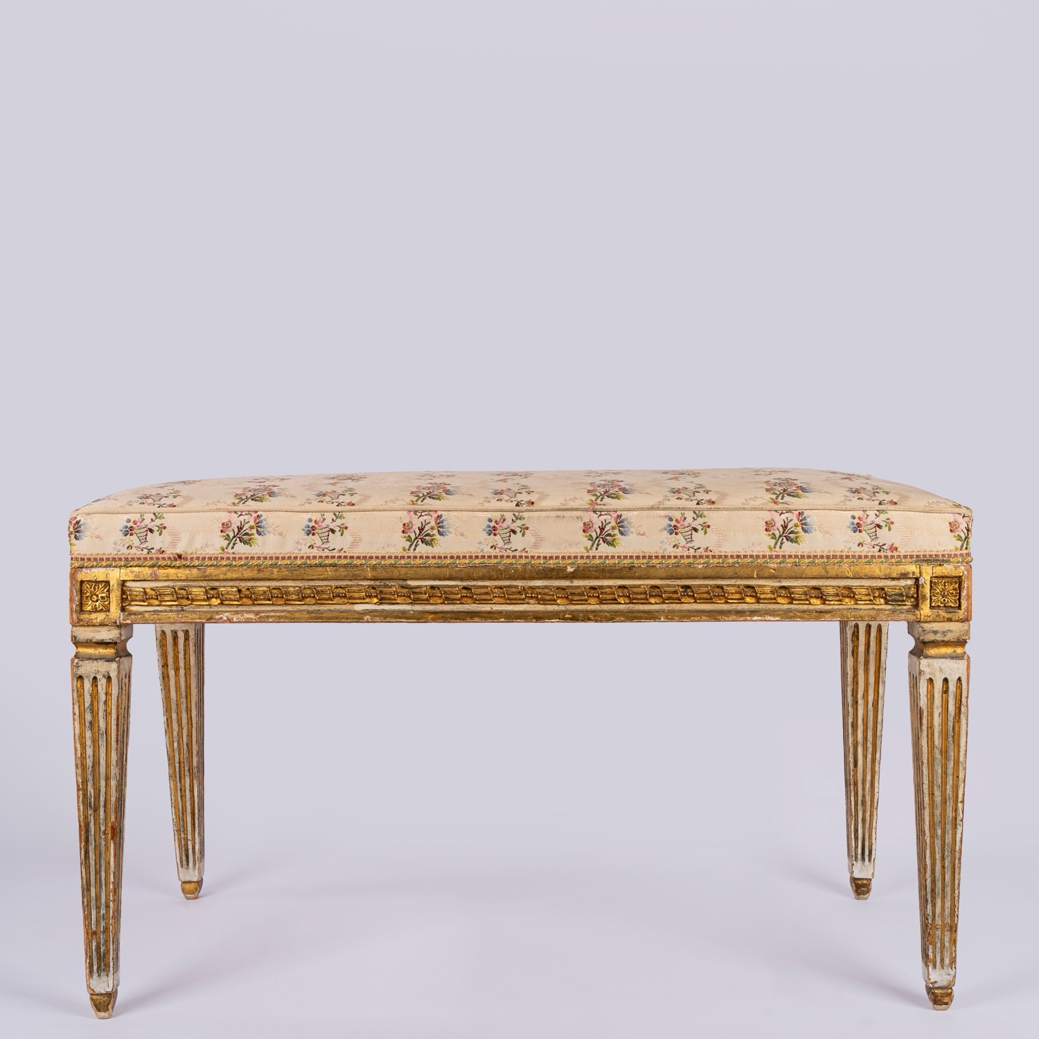Panchetto in legno laccato e dorato in stile Luigi XVI.