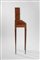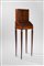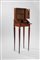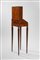 Anta ribaltabile celante vano centrale e due tiretti, alzata superiore a due ante apribili. Alte gambe rastremate.