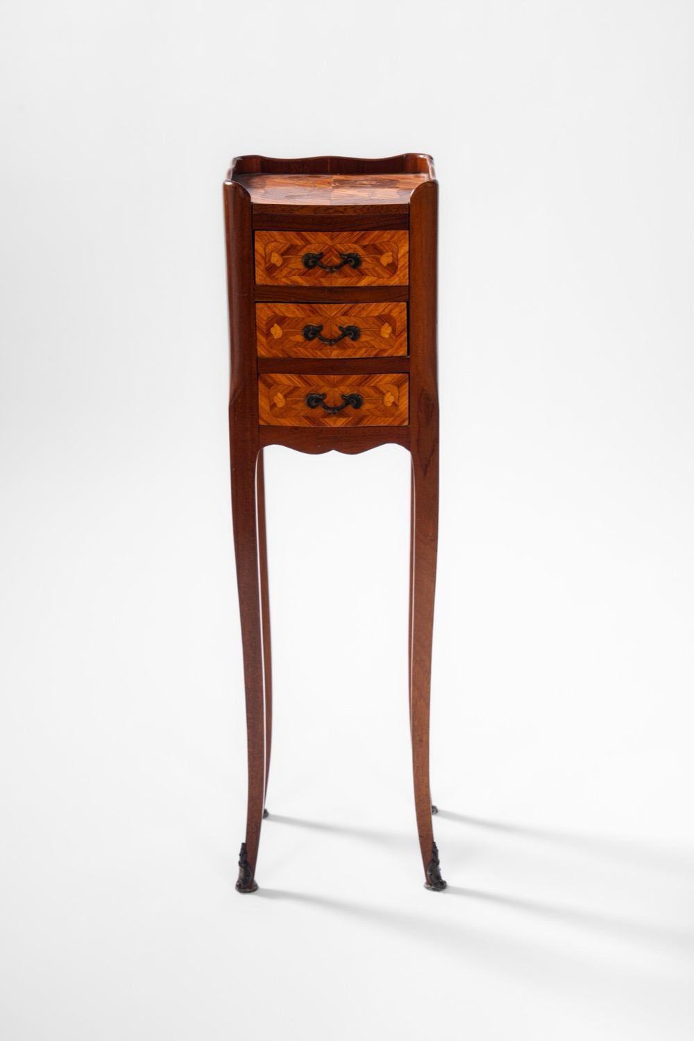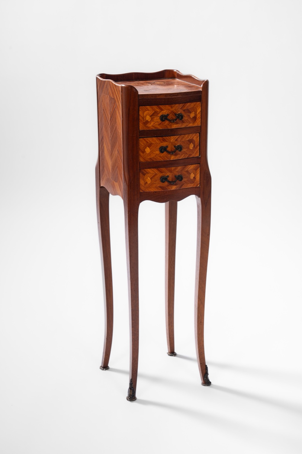 Comodino in miniatura in stile settecentesco lastronato e intarsiato