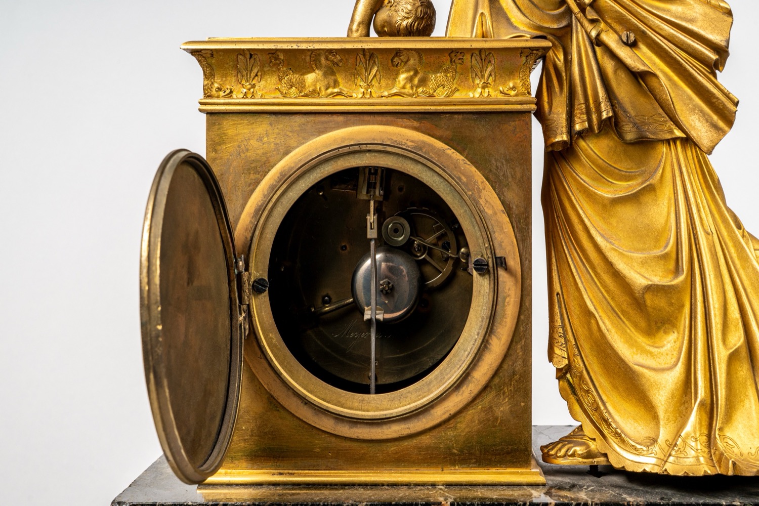 Pendola da tavolo in bronzo dorato raffigurante il mito di Achille, primo quarto secolo XIX