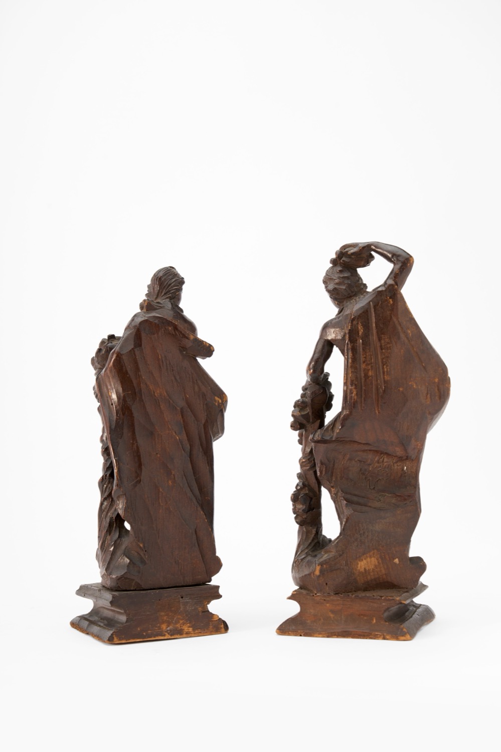 Due figure allegoriche in legno intagliato. Veneto, secolo XVIII
