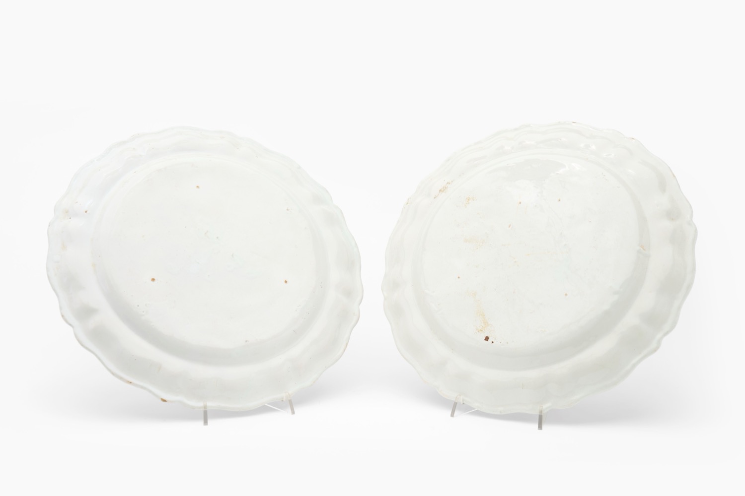 Coppia di grandi piatti in maiolica policroma. Manifattura Antonibon, Nove di Bassano, secolo XVIII