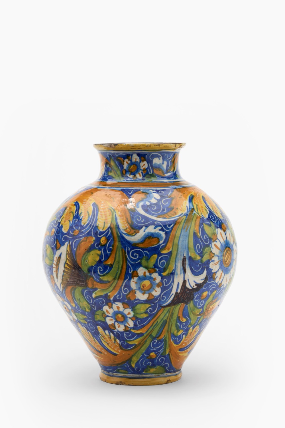 Vaso a boccia in maiolica policroma. Probabile Bottega di Mastro Domenico, Venezia, secolo XVI