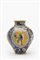Difetti. Di forma globulare, decorato a volute fogliate, fiori e campanule su fondo blu cobalto. Sul fronte medaglione con Cristo pantocratore.
