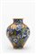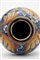 Di forma globulare, decorato a volute fogliate, fiori e campanule su fondo blu cobalto. Sul fronte medaglione con Cristo pantocratore.