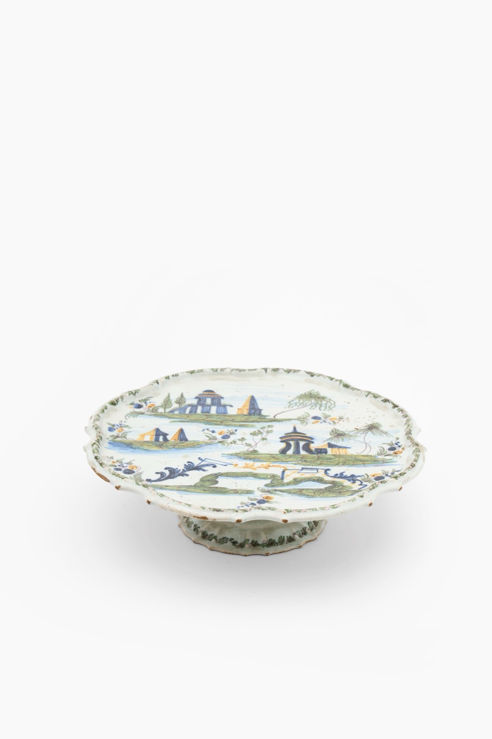 Alzata polilobata in maiolica policroma con decoro “al ponticello”. Manifattura Antonibon, Nove di Bassano, secolo XVIII