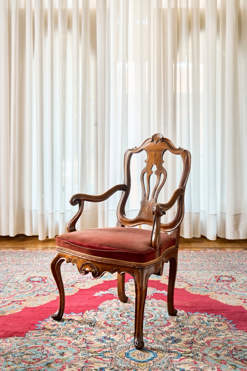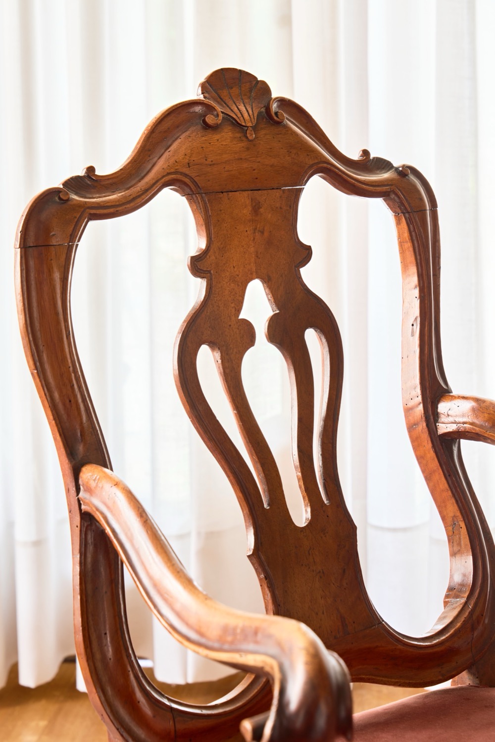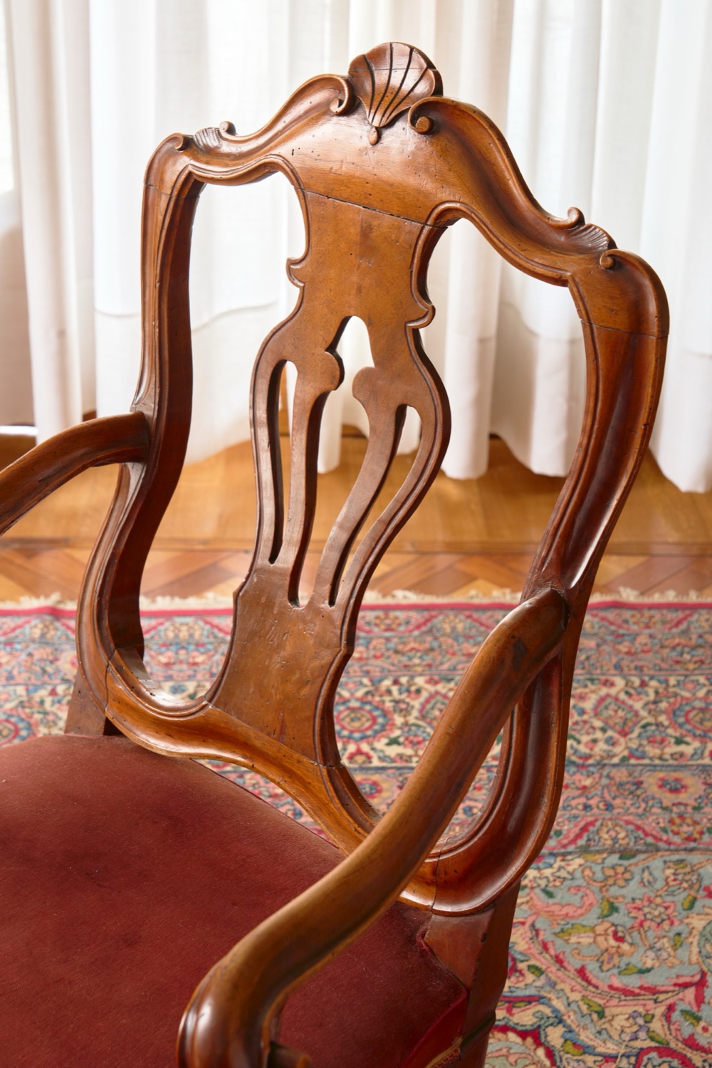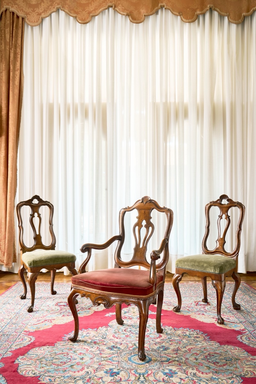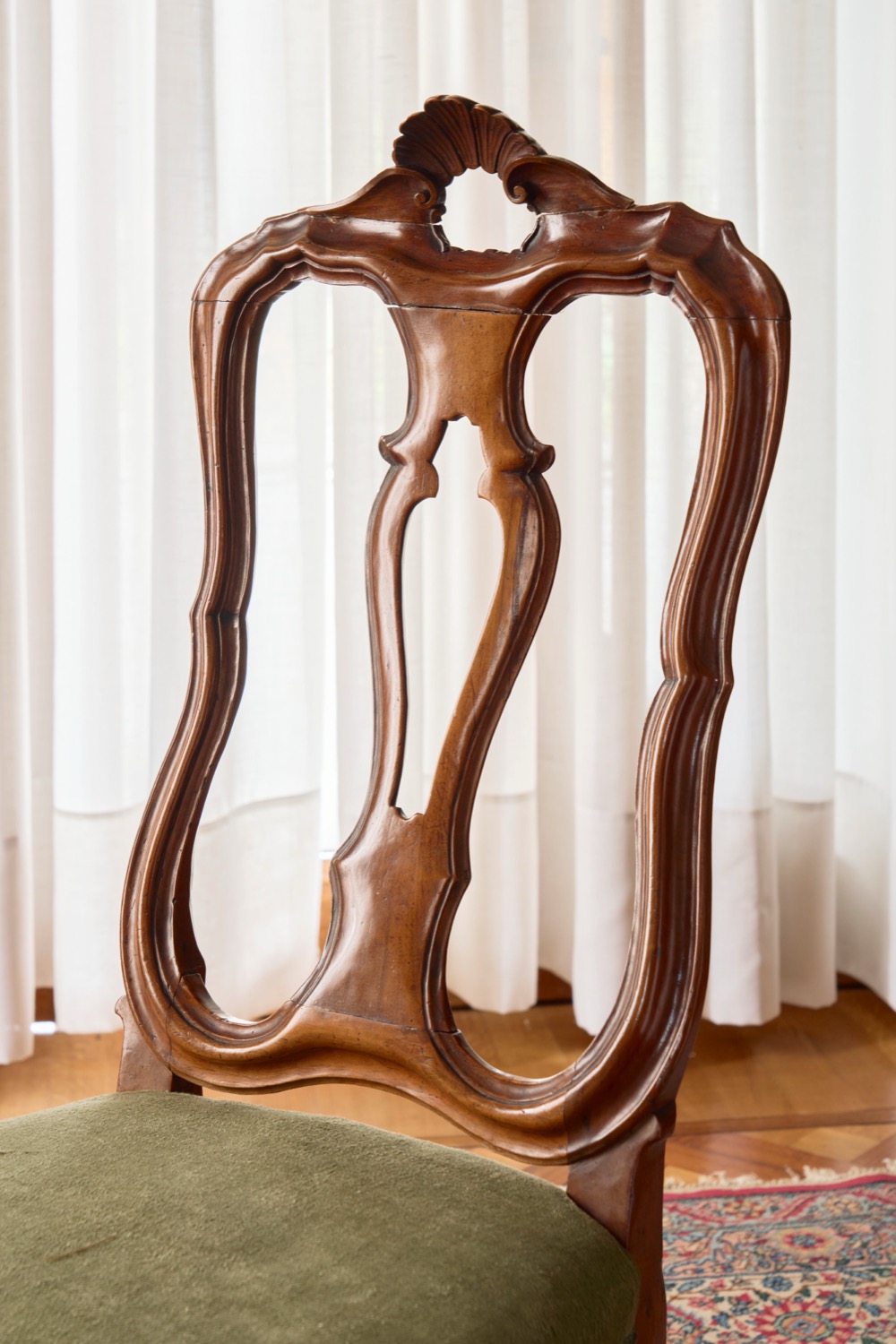 Lotto composto da una poltrona e due sedie in noce. Veneto, secolo XVIII.