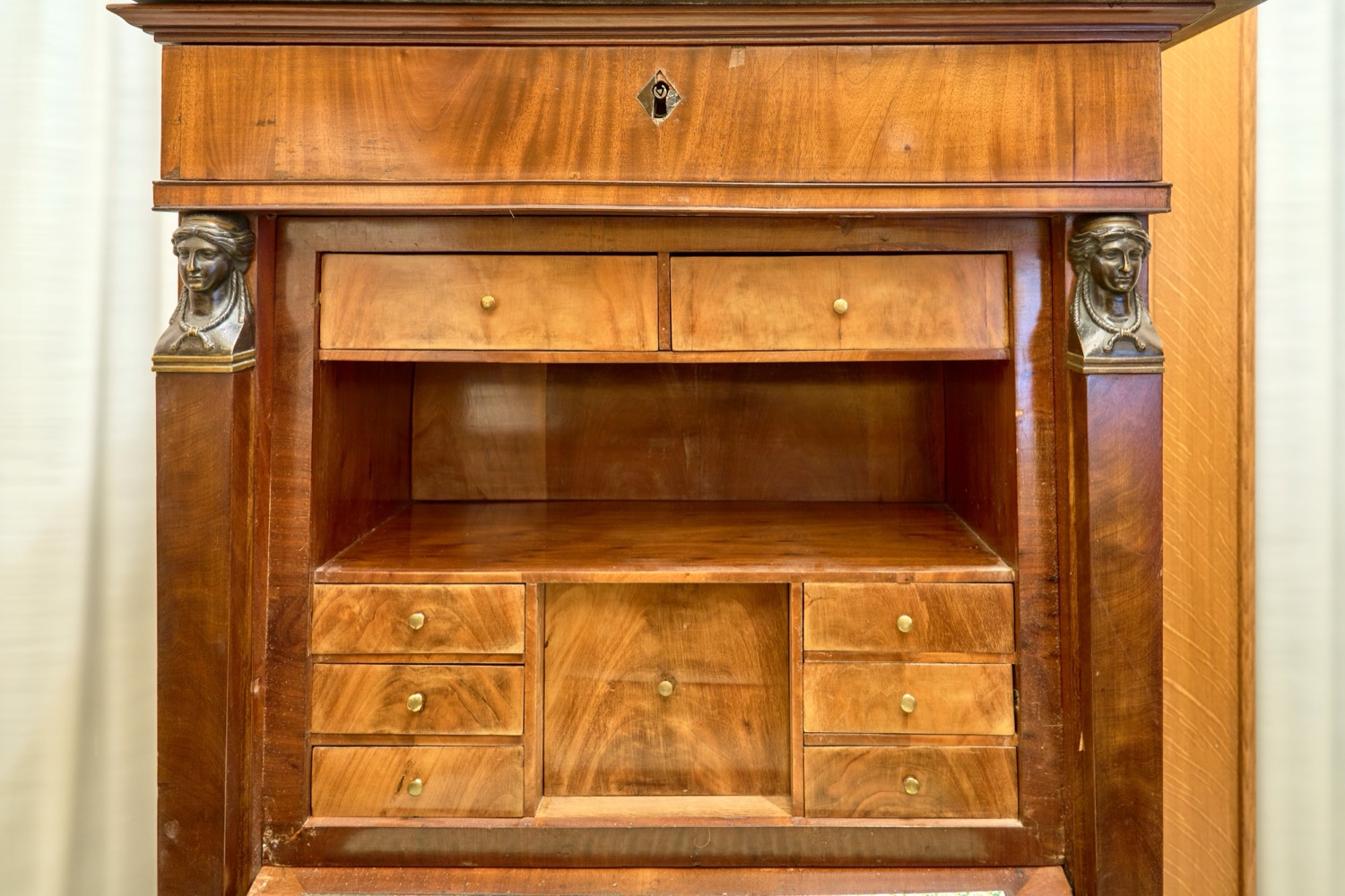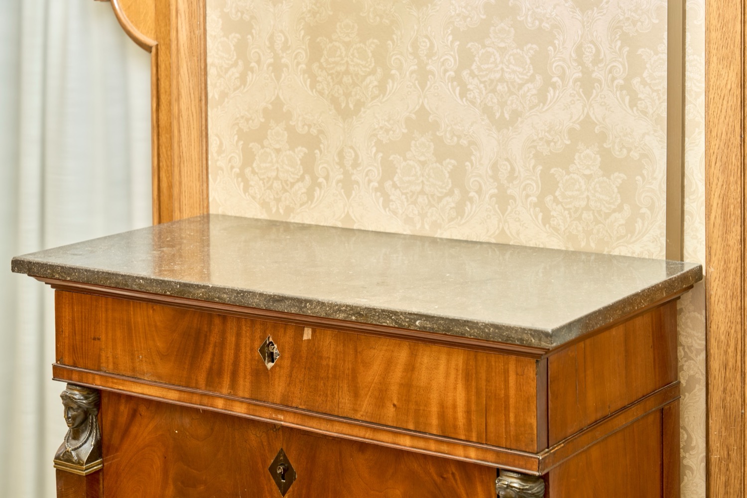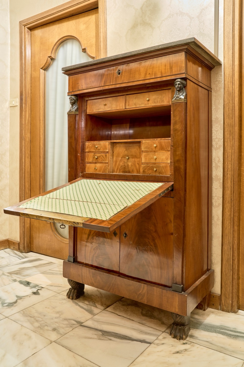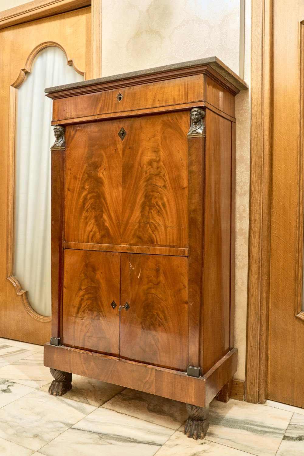 Lot 156 | Secretaire lastronato in piuma di mogano con piano in marmo. Secolo XIX