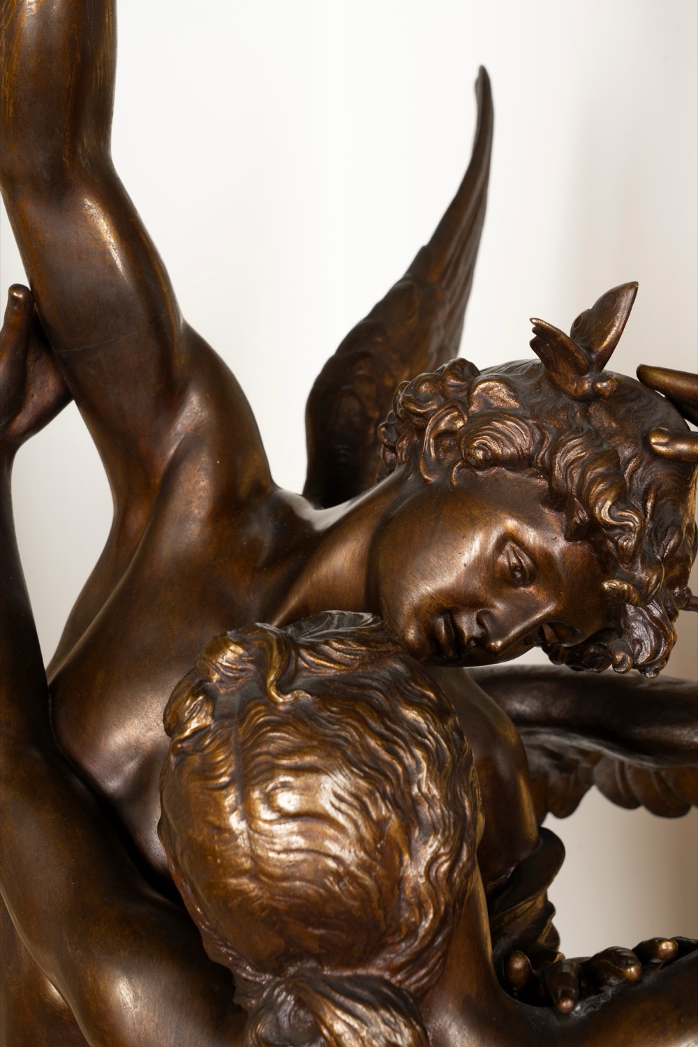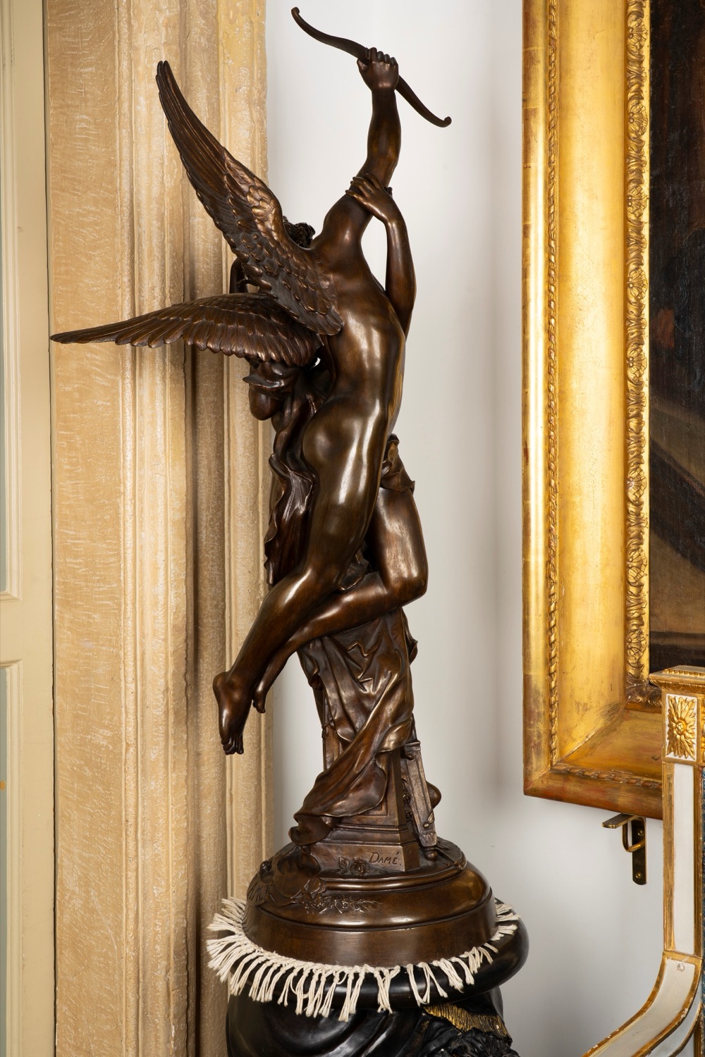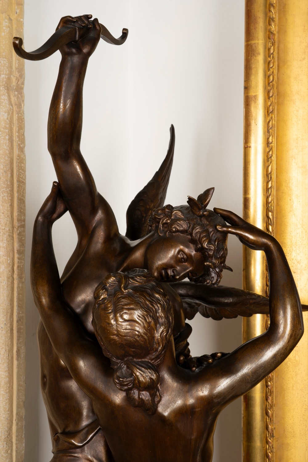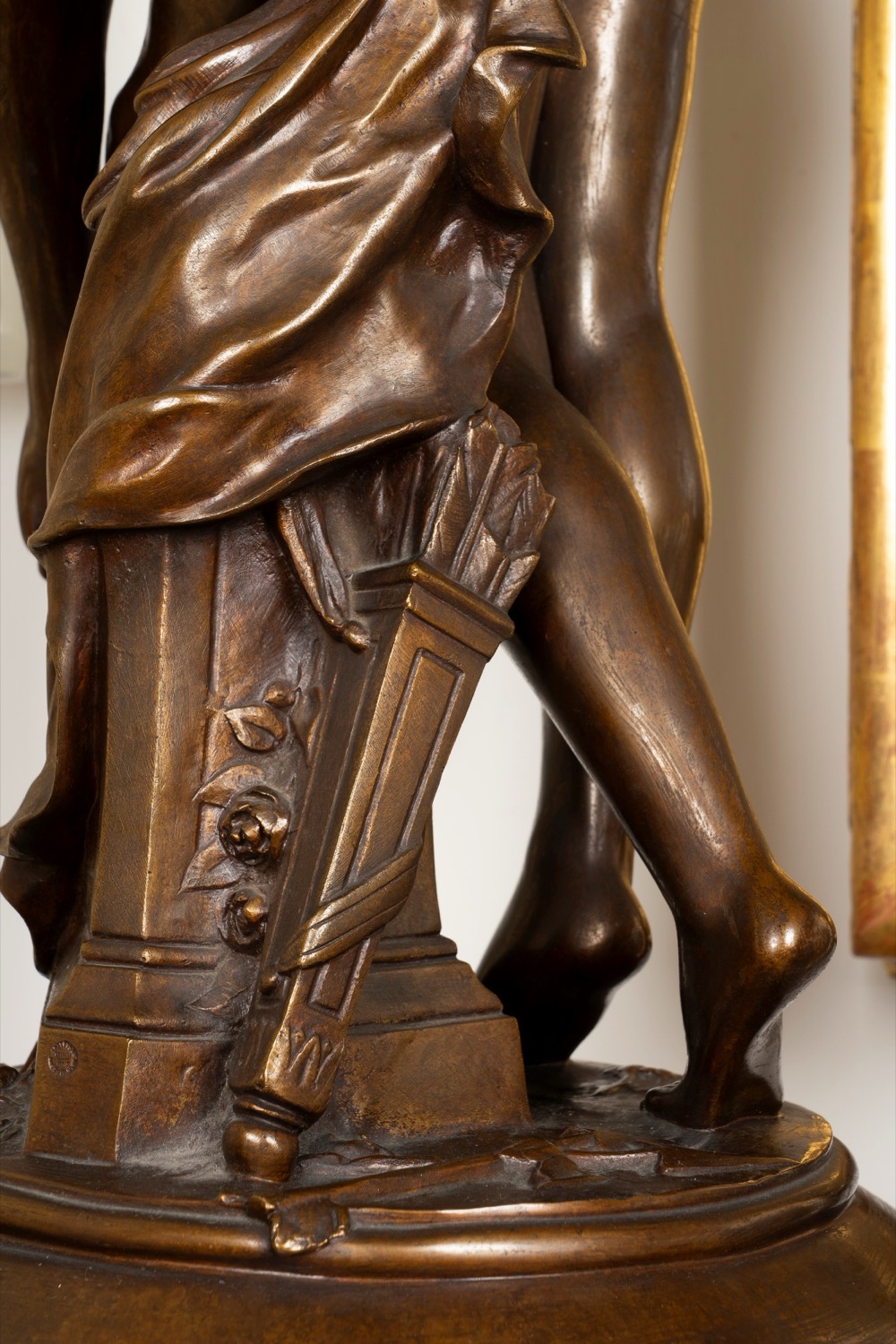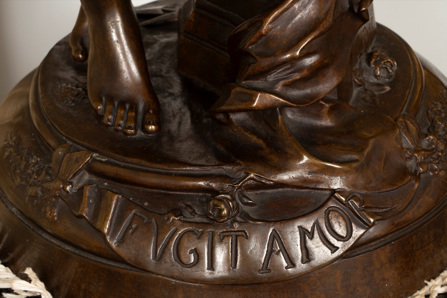 Grande gruppo in bronzo intitolato "Fugit Amor". Da un modello di Ernest Damè, Parigi, fine secolo XIX