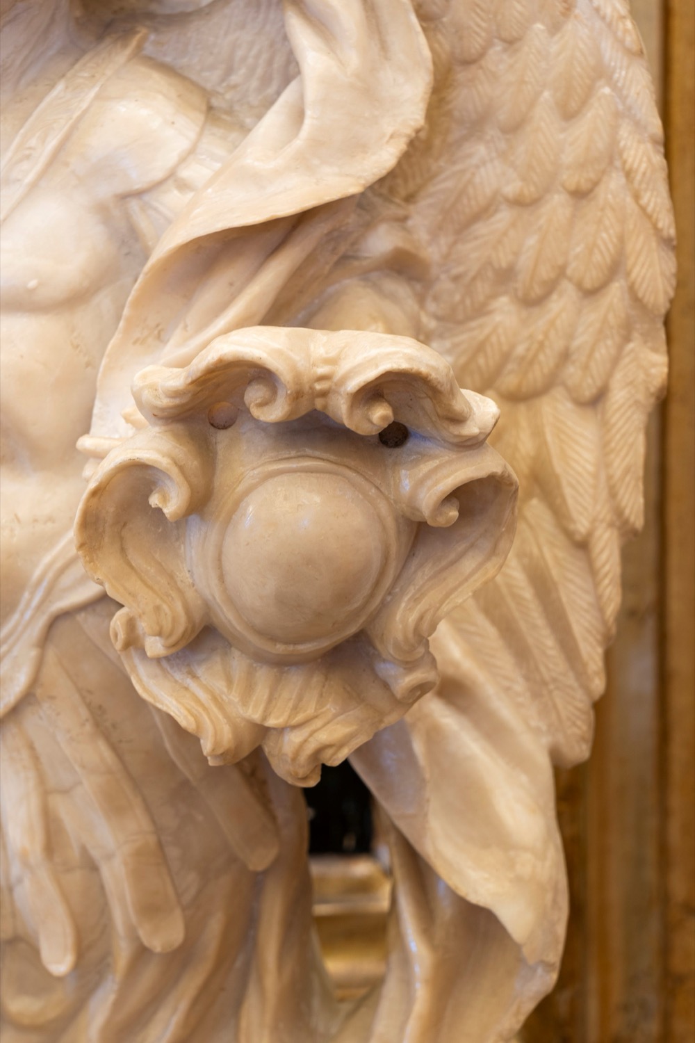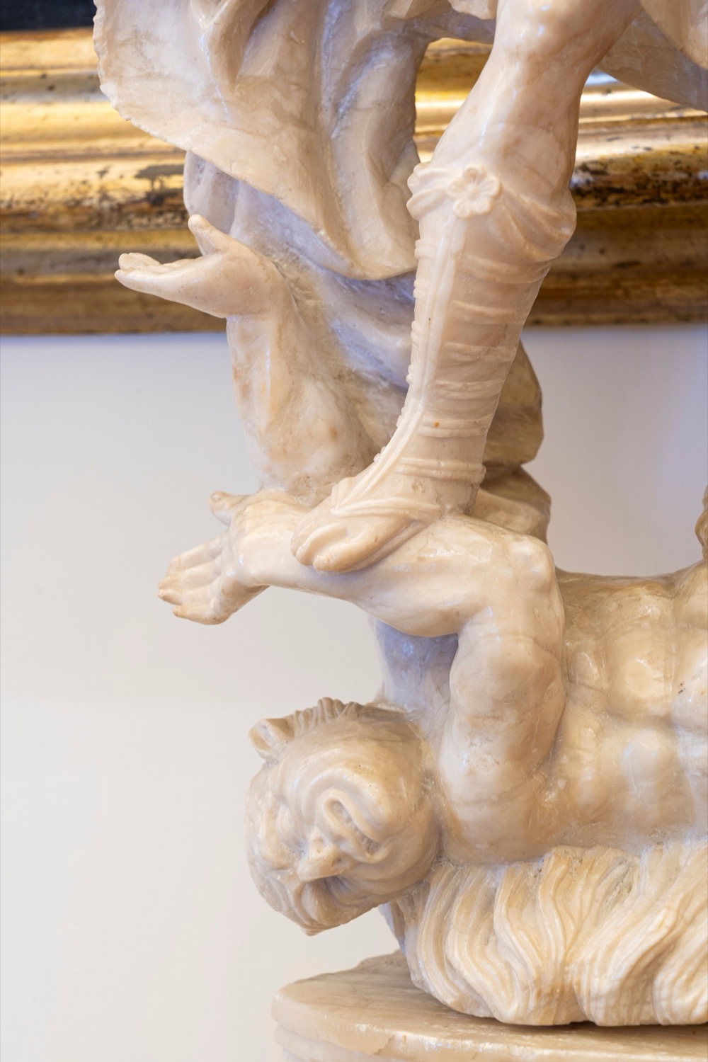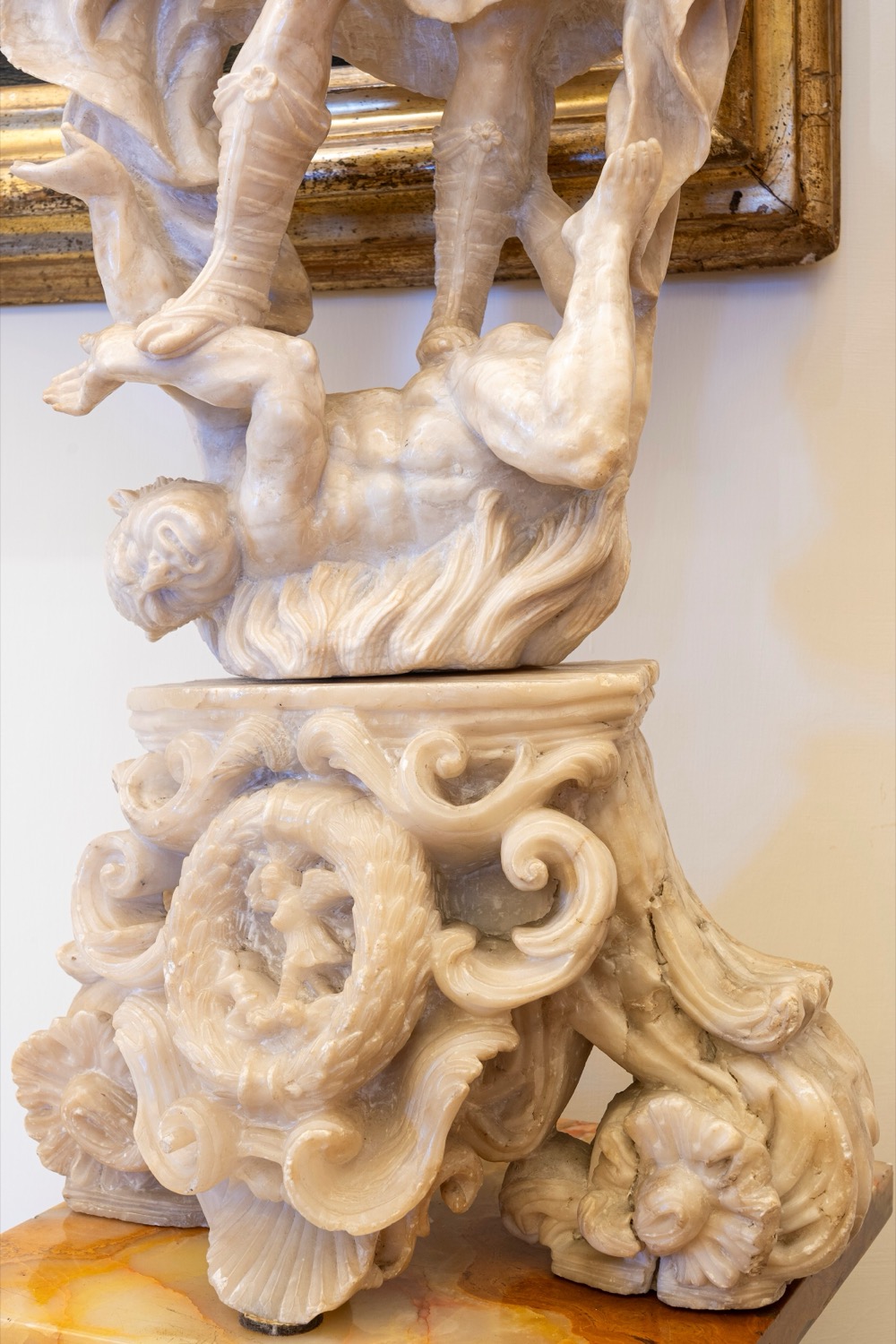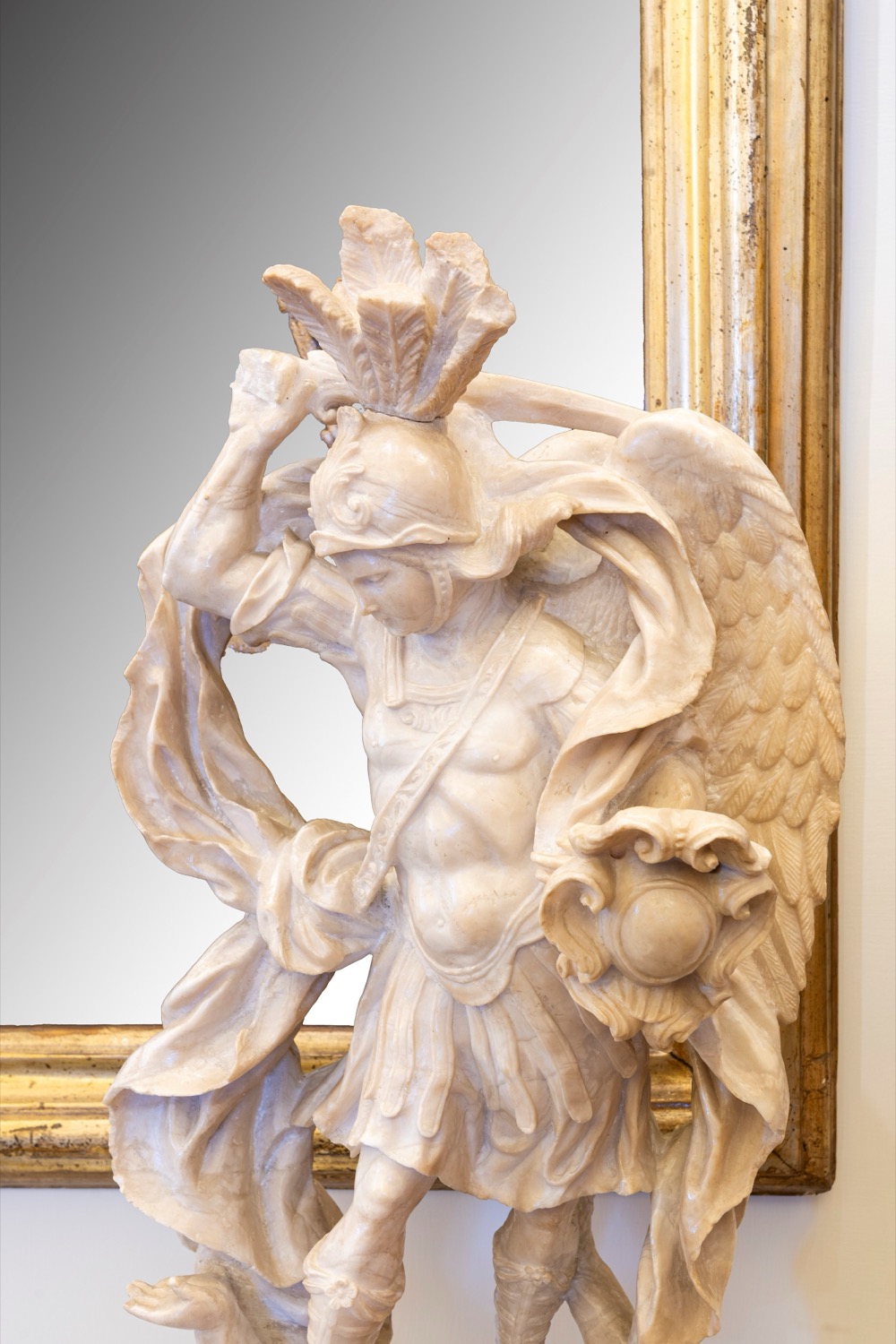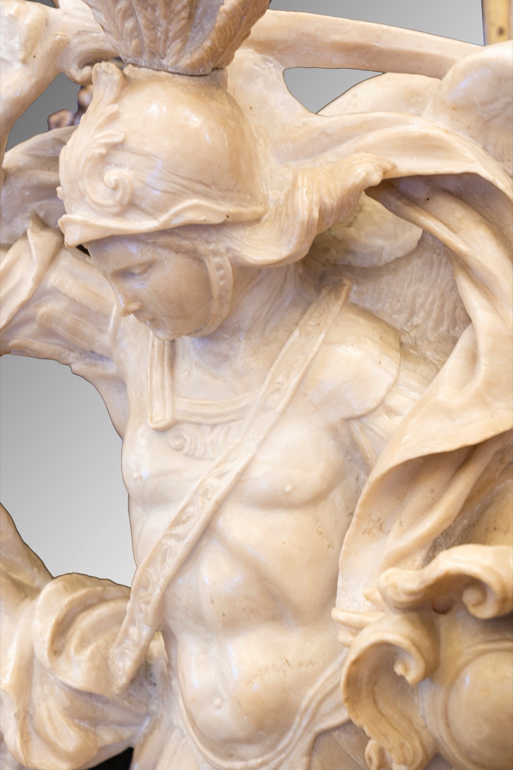 Scultura in alabastro raffigurante San Michele Arcangelo che sconfigge il demonio. Secolo XVIII