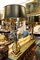Coppia di lampade bouillotte a candelabri in bronzo brunito e dorato. Francia, circa 1900