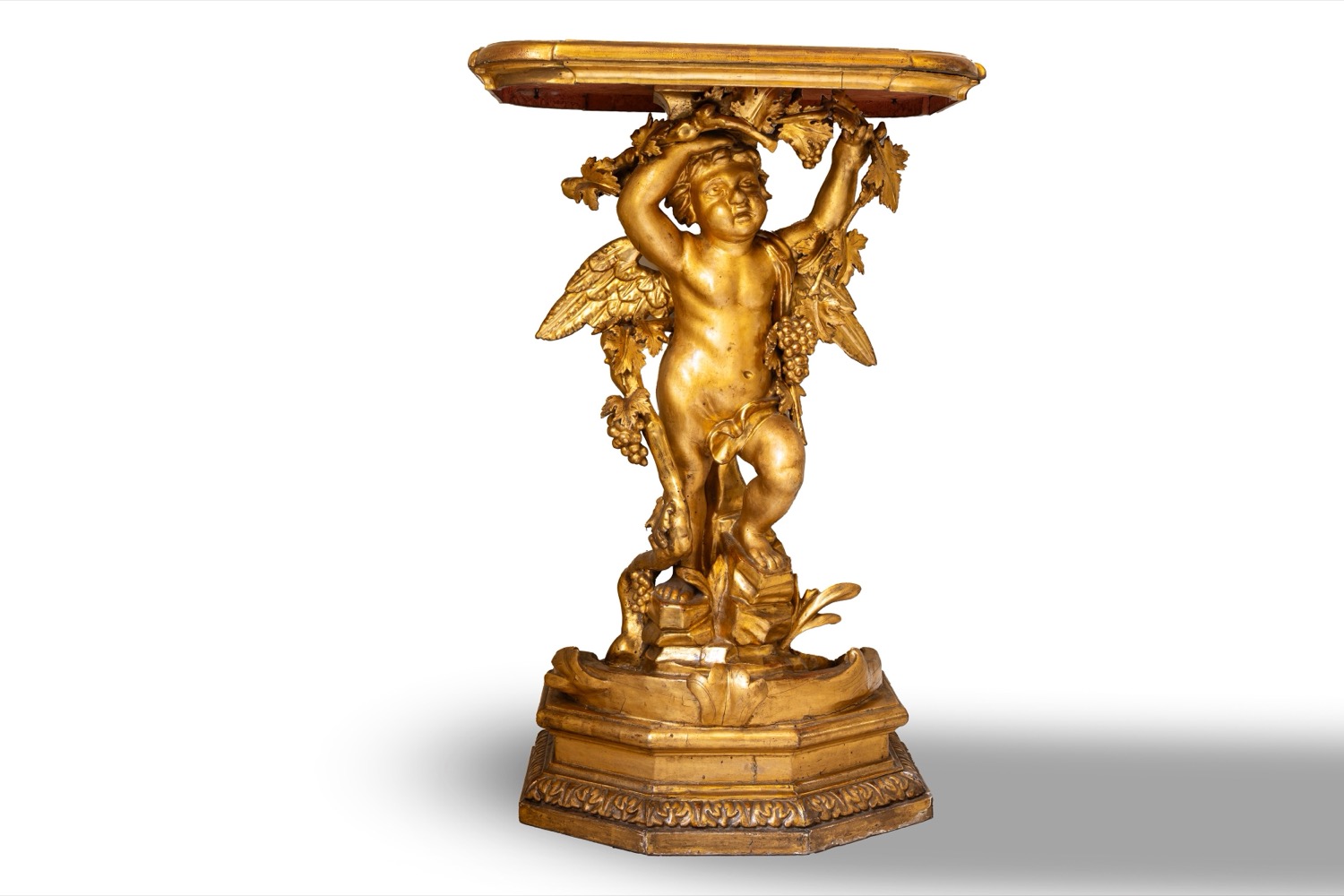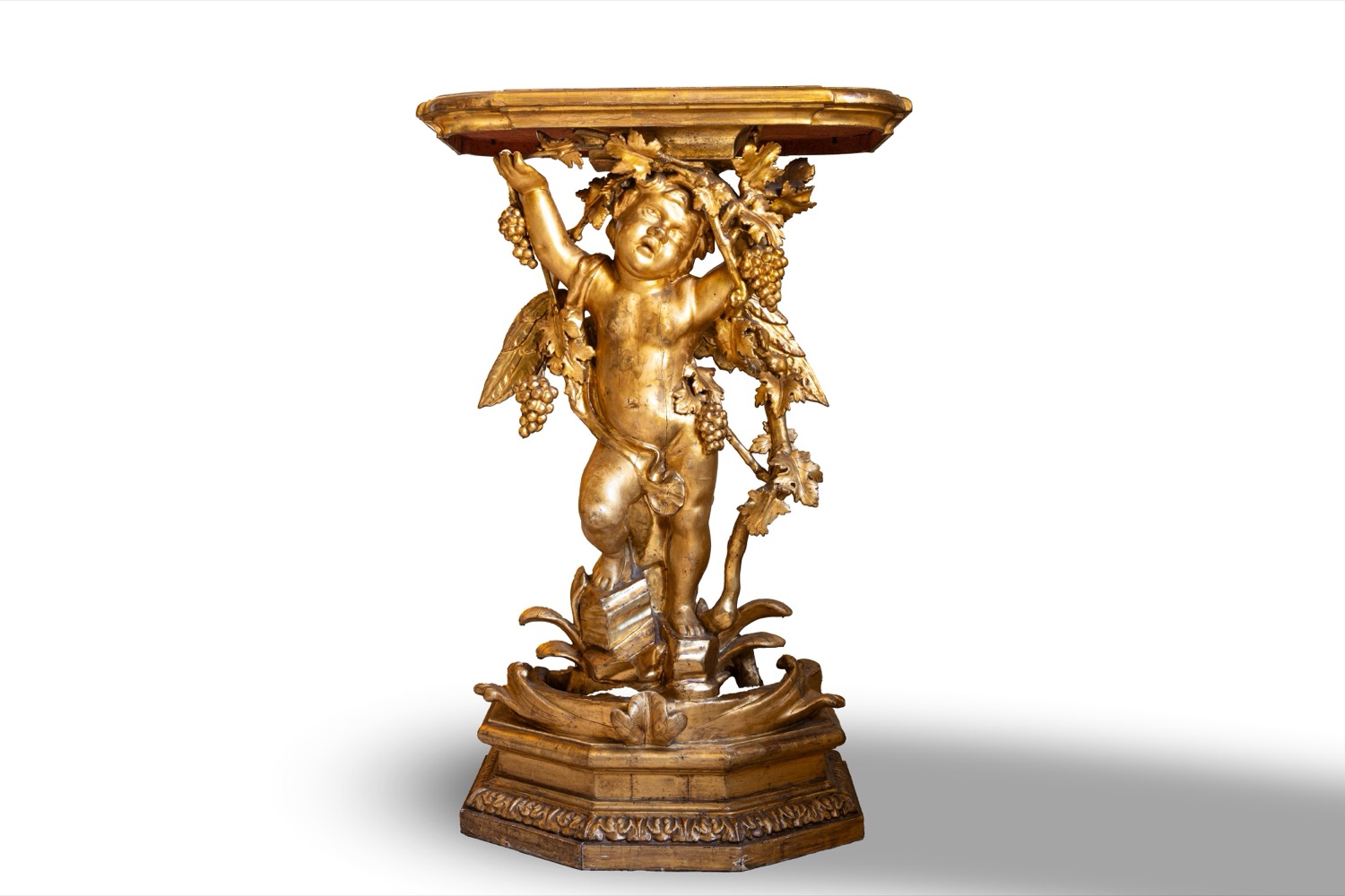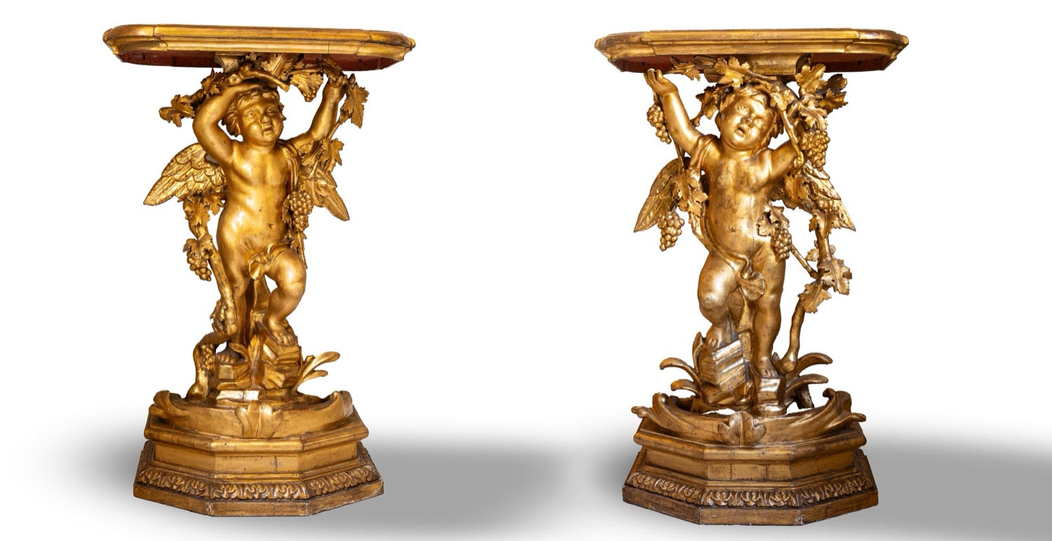 ciascuna con sostegno in forma di putto bacchico poggiante su base esagonale ciascuna con sostegno in forma di putto bacchico poggiante su base esagonale