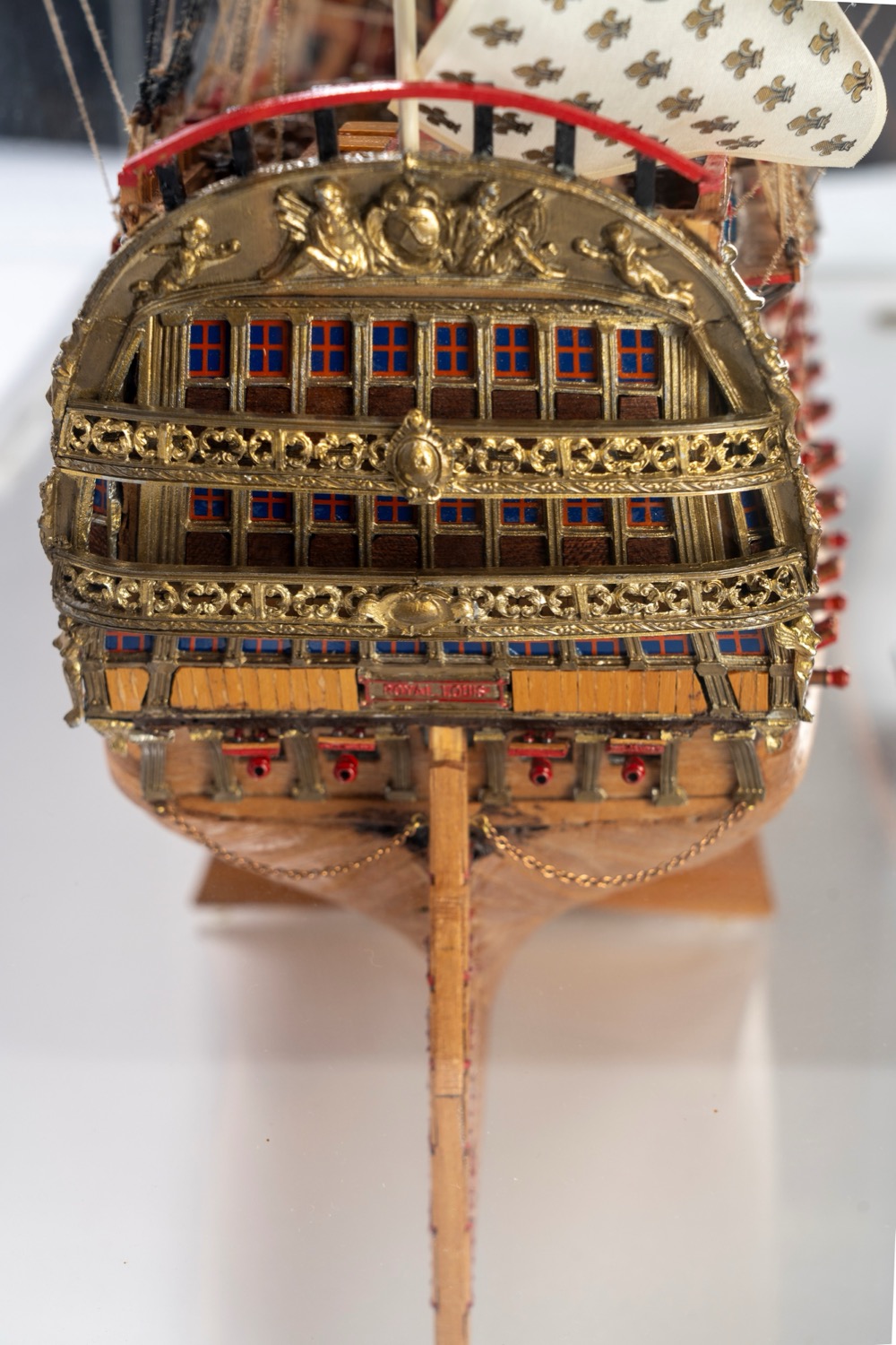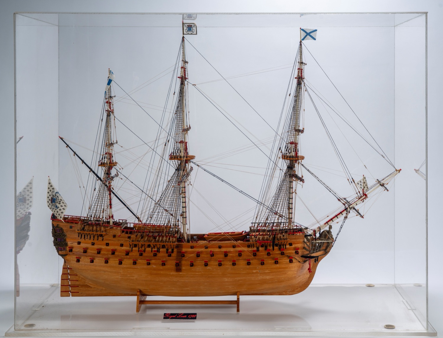 Modello dell' ammiraglia della marina francese Royal Louis, entro teca in plexiglass