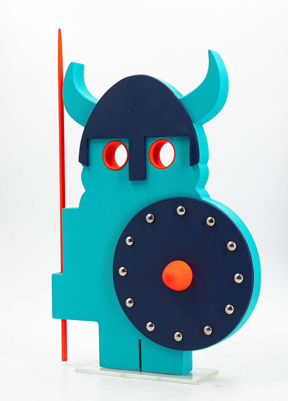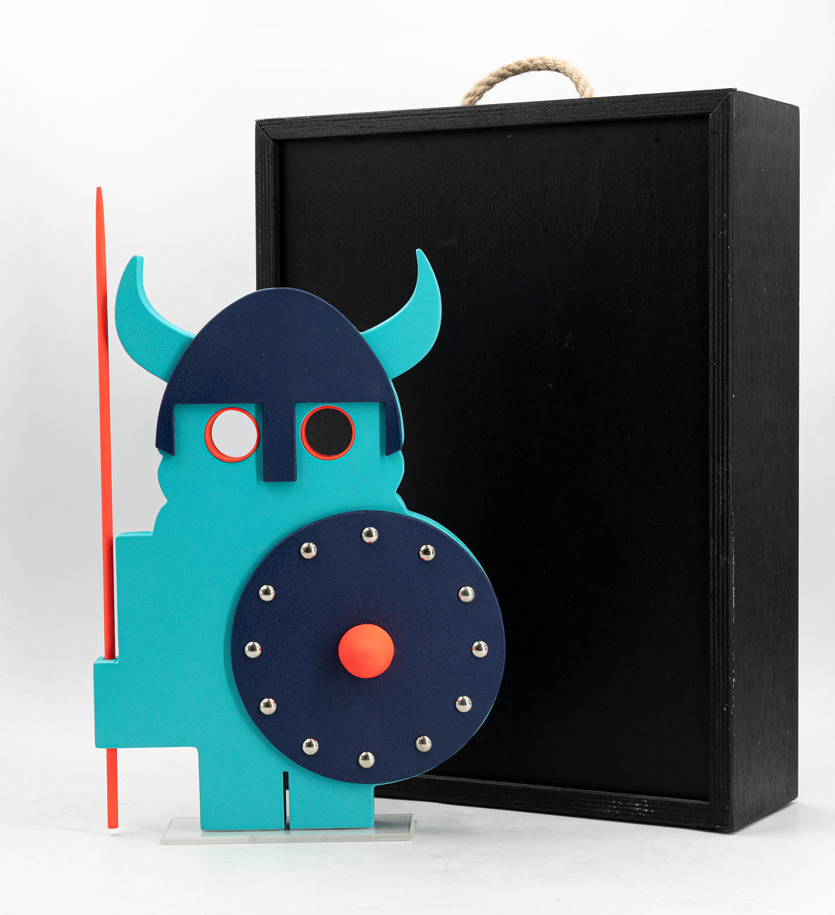 Scultura in mdf sagomato e dipinto, entro scatola originale in legno