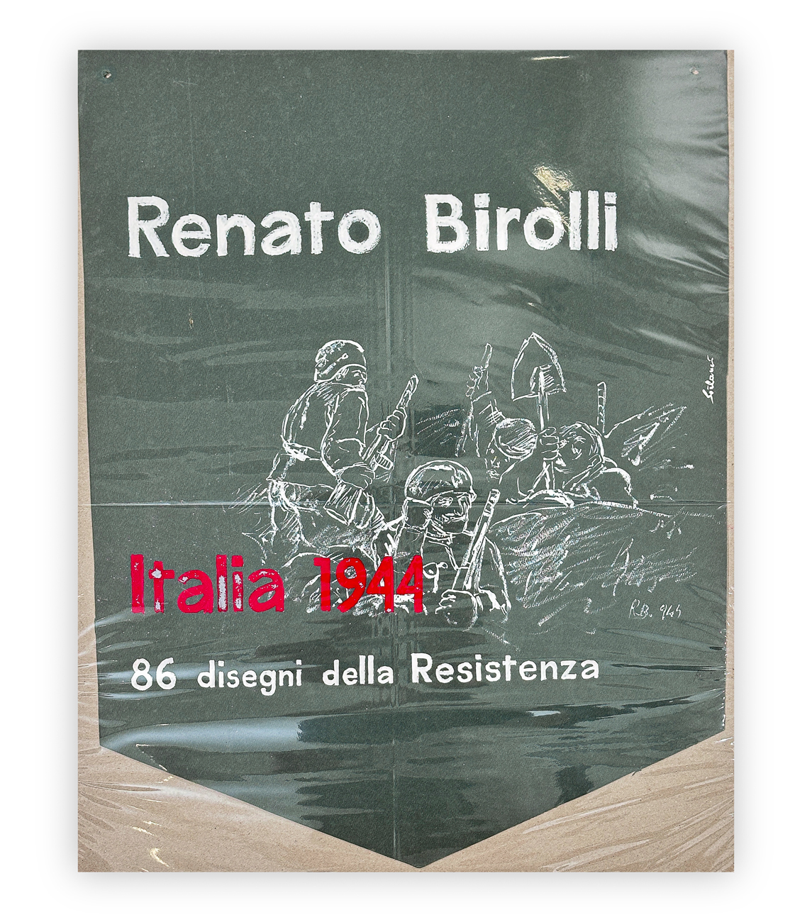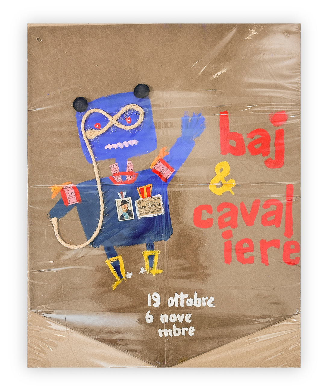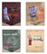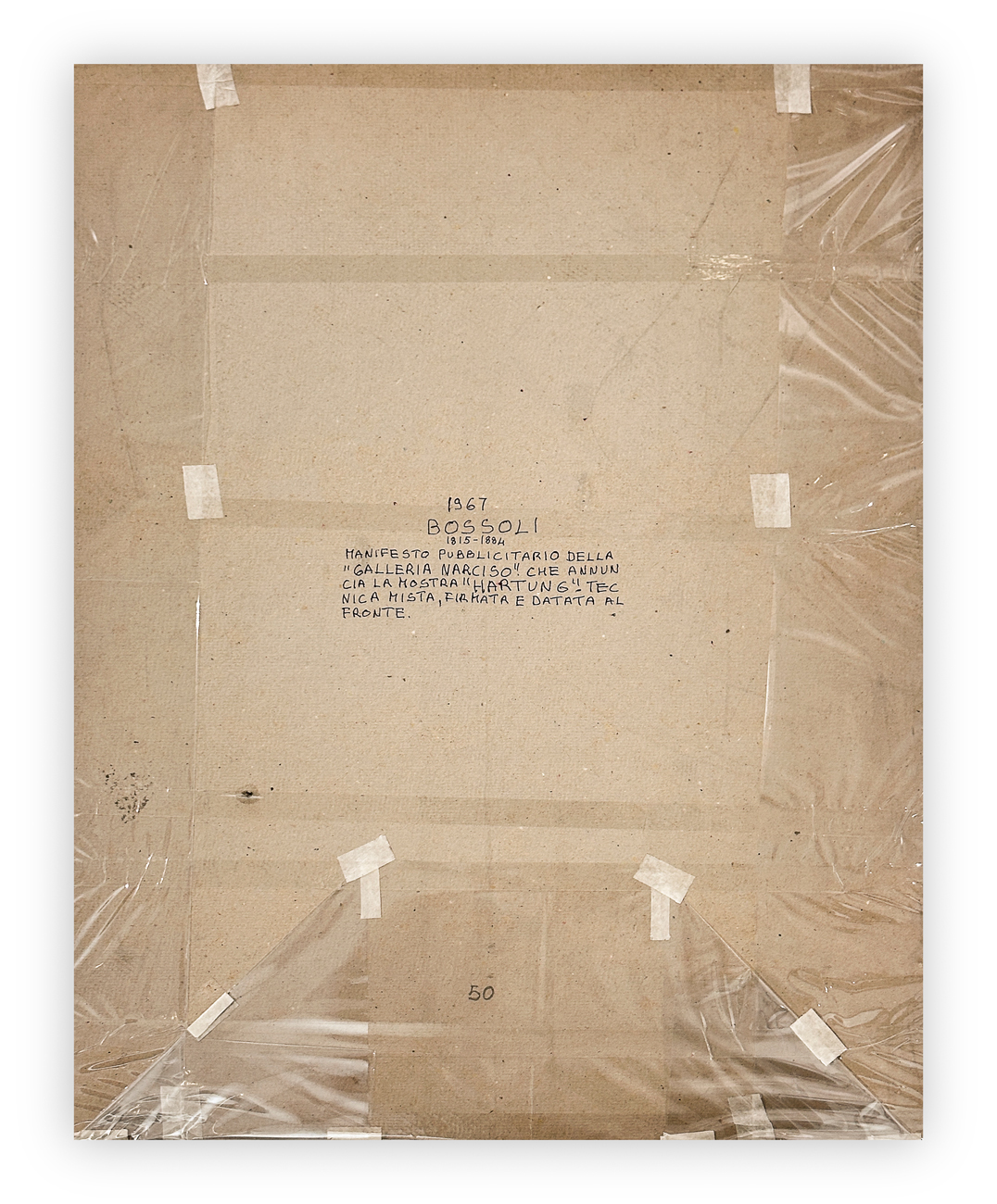 4 locandine dipinte a mano realizzate in occasione delle seguenti esposizioni: Hartung 1967, Alberto Savinio, Enrico Baj & Cavaliere e Renato Birolli