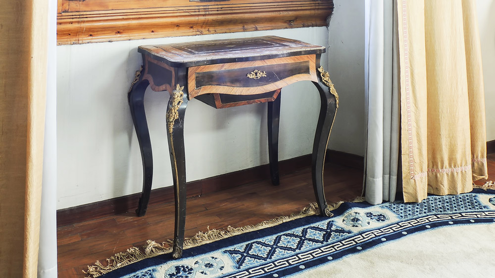 TAVOLINO DA LAVORO IMPIALLACCIATO IN MOGANO E LEGNO DI ROSA Francia, prima...