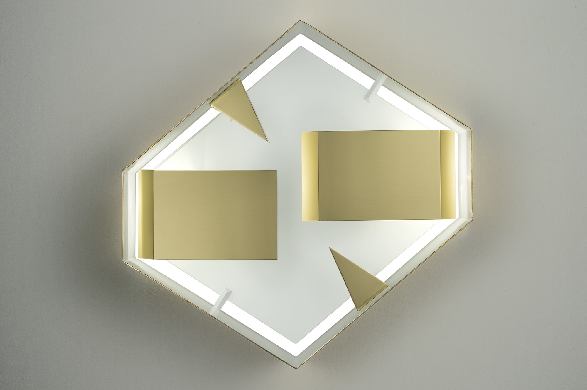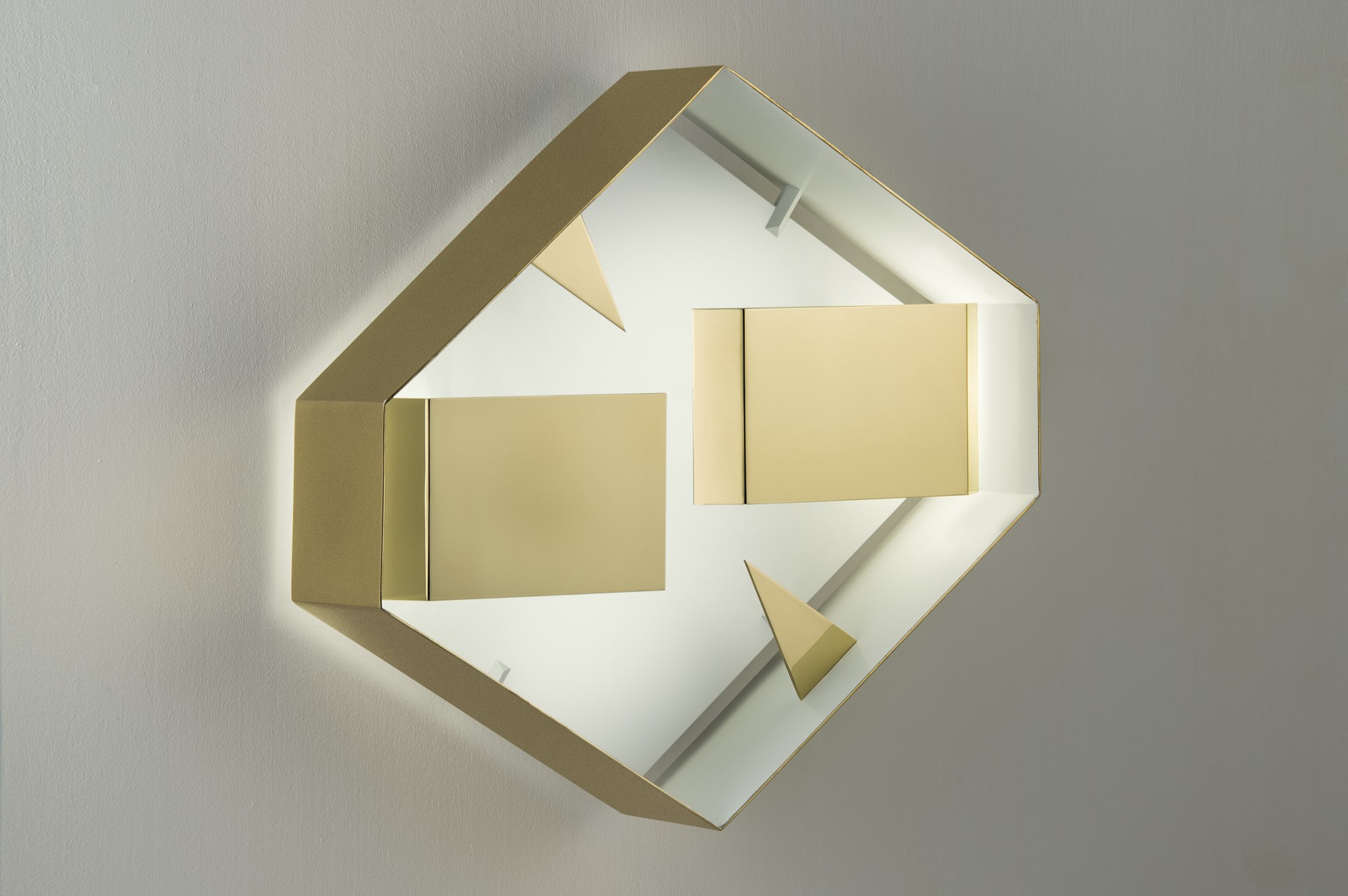 GIO PONTI (Milano 1891 - 1979) Lampada da parete modello "Quadro di luce esagonale" in ottone lucido. Prod. Pollice Illuminazione, Italia, 2013-2017. Cm 42x43x12,5. Reca numeri di tiratura 28/100. L'opera è accompagnata da certificato di autenticità.