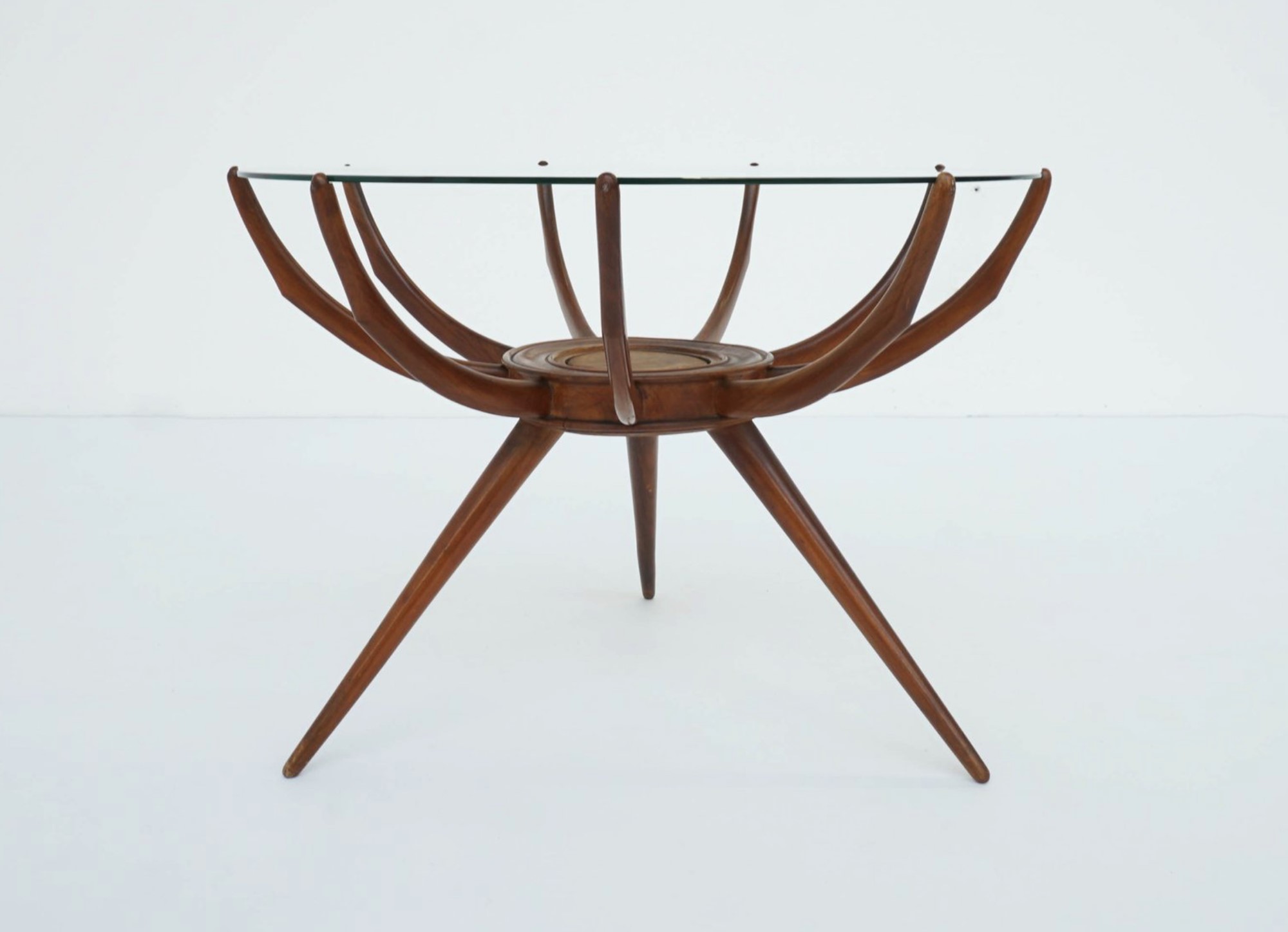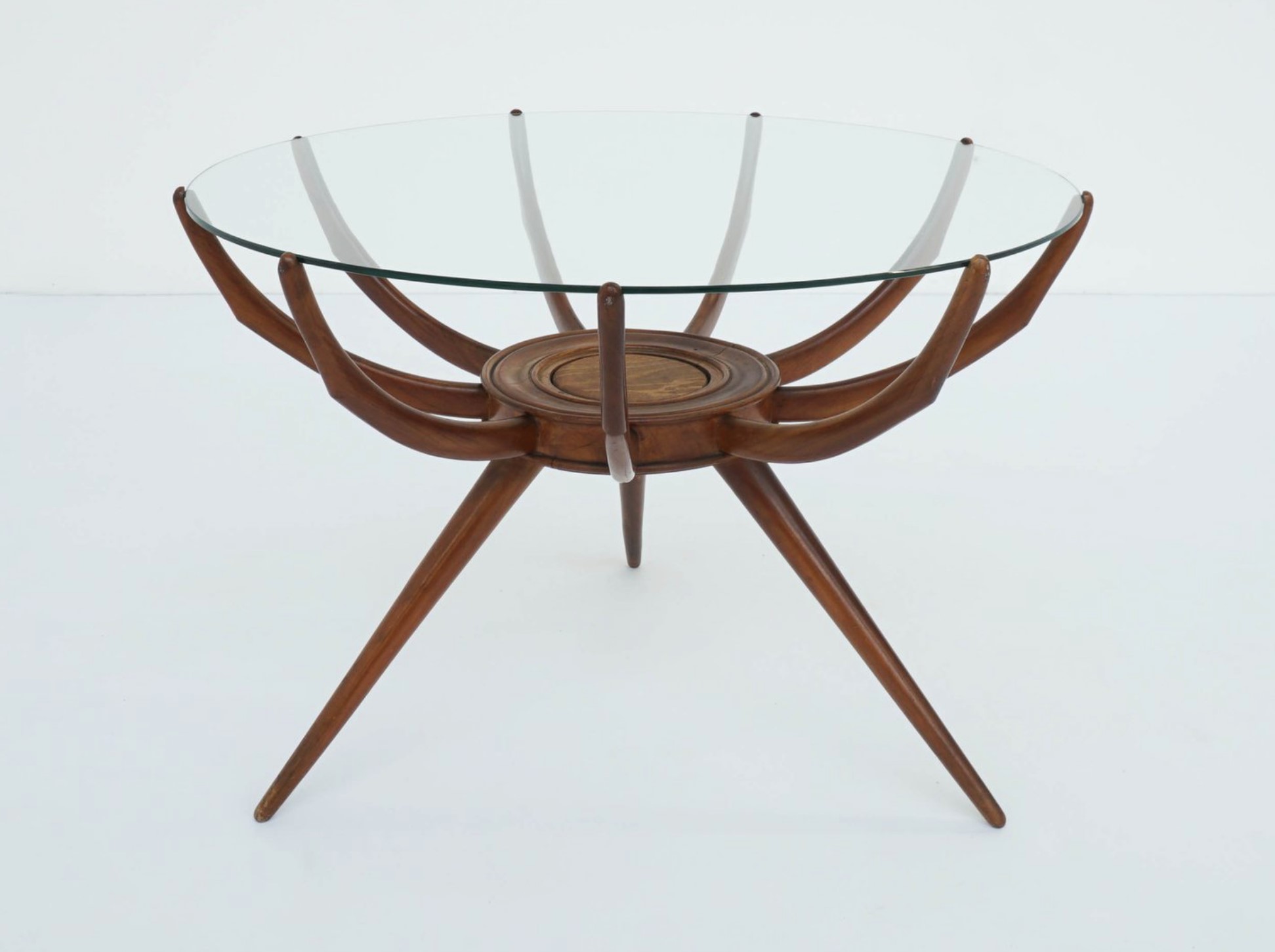 CARLO DE CARLI (Milano 1910 – Milano 1999) Tavolino da caffè modello Spider. In legno di faggio e piano in cristallo. 1951. Prod. Italia. Cm 52x69.
