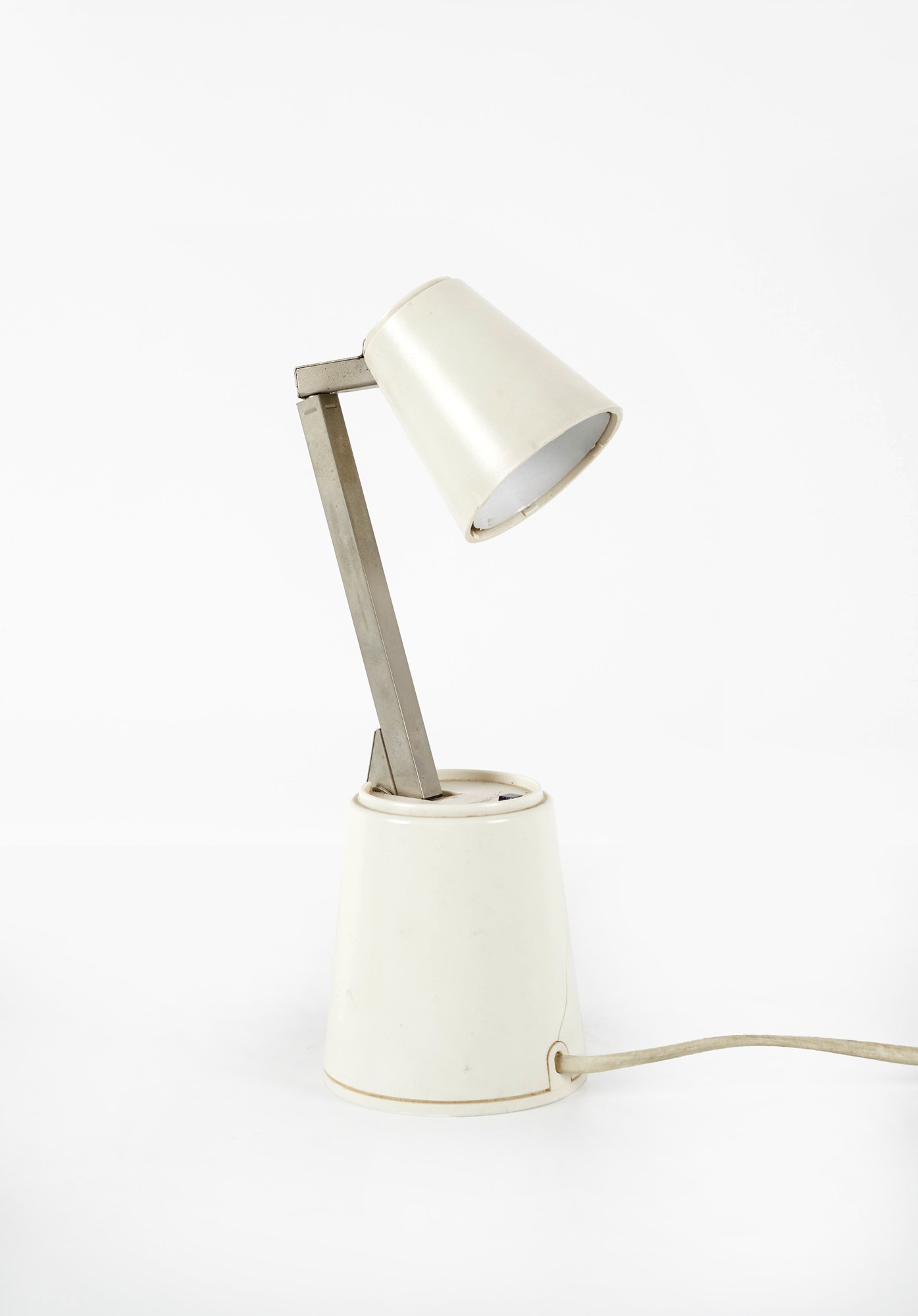 EICHHOF Lampada da tavolo modello "Lampette" in metallo verniciato bianco. Prod. Eichhoff Werke, Germania, anni '60. Cm 50x8ø.