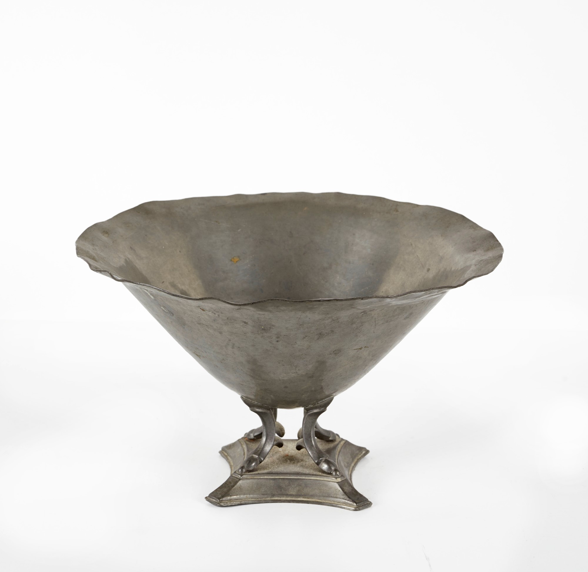 Centrotavola in peltro. Prod. Danimarca, XX secolo. Cm 15,5x22,5ø. Sotto la base reca marchio Denmark.