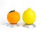 IKEA Coppia di lampade modello B9702 Arancia e Limone. 1990. Prod. Ikea, Svezia. Rispettivamente cm 23x16; 20x16.