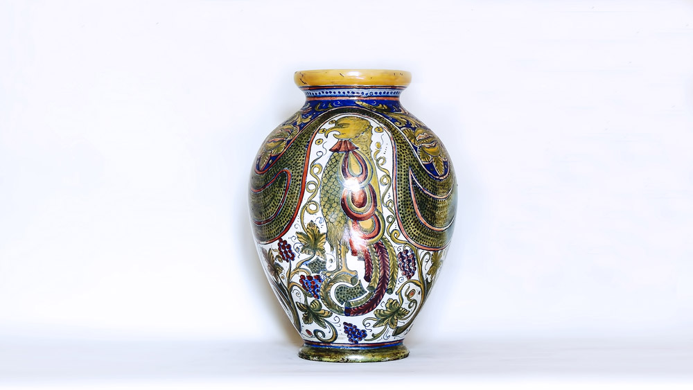 VASO IN TERRACOTTA SMALTATA Gualdo Tadino, inizio del XX secolo dipinto a...