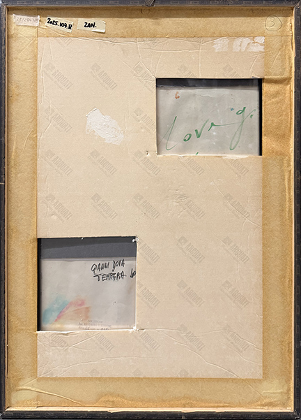 GIANNI DOVA, Senza titolo, 1956, tecnica mista su cartoncino, cm 60x40. Al fronte: firma in basso a sinistra. Al verso: firma, data, timbro della Collezione Avv. Antonino Verdirame, con n. 2371. Opera accompagnata da certificato di provenienza. Opera con cornice in omaggio.