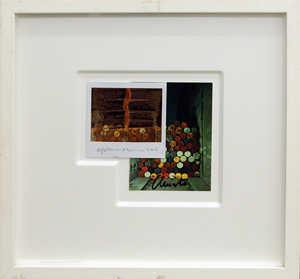 MAURIZIO GALIMBERTI PER CHRISTO, "Affezione", 2011, Readymade-Polaroid originale unico, cm 15x16, con cornice 38x38x3 cm, 2,55 kg. Al fronte: firma sulla foto. Al verso: titolo, anno, firma, timbro dell'archivio e nuemro archivio, misure. Opera con certificato di provenienza della Daliano Ribani Arte. Opera con cornice.