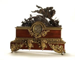 PENDOLA Pendola in legno e bronzo, Francia epoca Carlo X H 59 60x22 cm Cassa in legno e bronzo, quadrante argentato con numerazione romana, movimento parigino con suoneria delle ore e delle mezze su campanello. A wooden and bronze clock, France Charles X