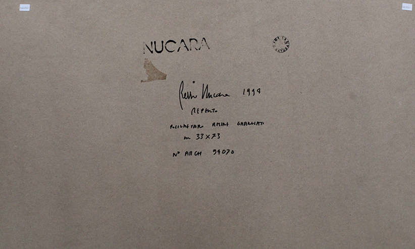RENZO NUCARA, 1994, Poliuretano, Dim. 33x73, Opera archiviata al N°94070, Al verso: timbro dell'artista, firma autografa, anno, titolo (Repinto?), tecnica, dimensione, N° archivio