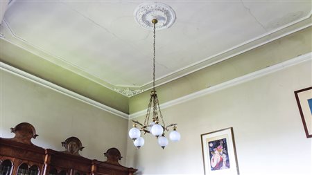 LAMPADARIO IN METALLO DORATO fascia sbalzata con motivi geometrici, una luce...